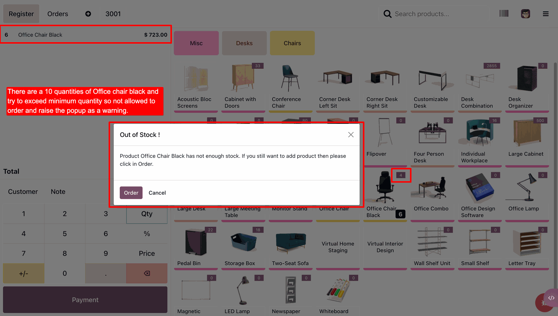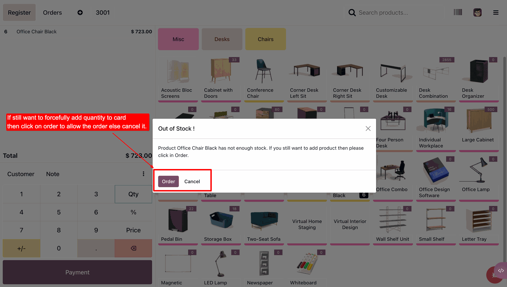If you still want to forcefully add the quantity to the cart, click on the 'Order' button to proceed otherwise, cancel the action.