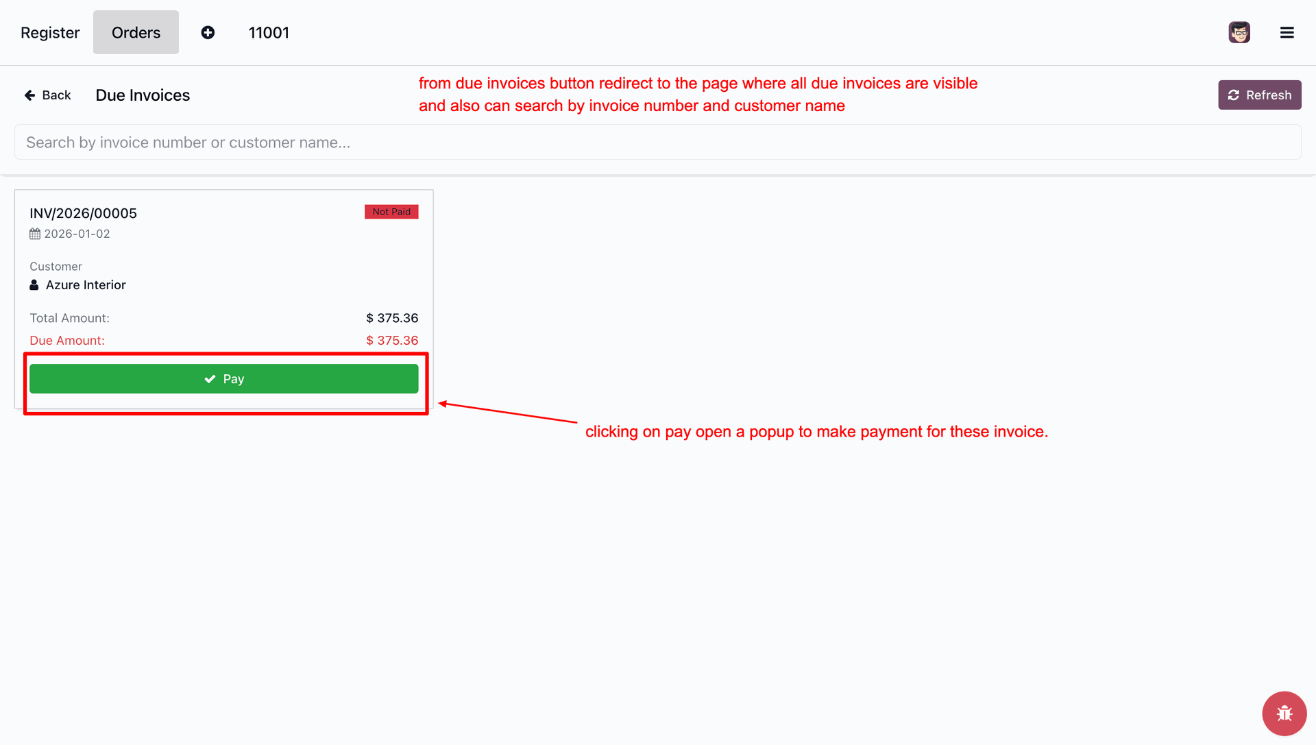 Pay Due Invoices from POS