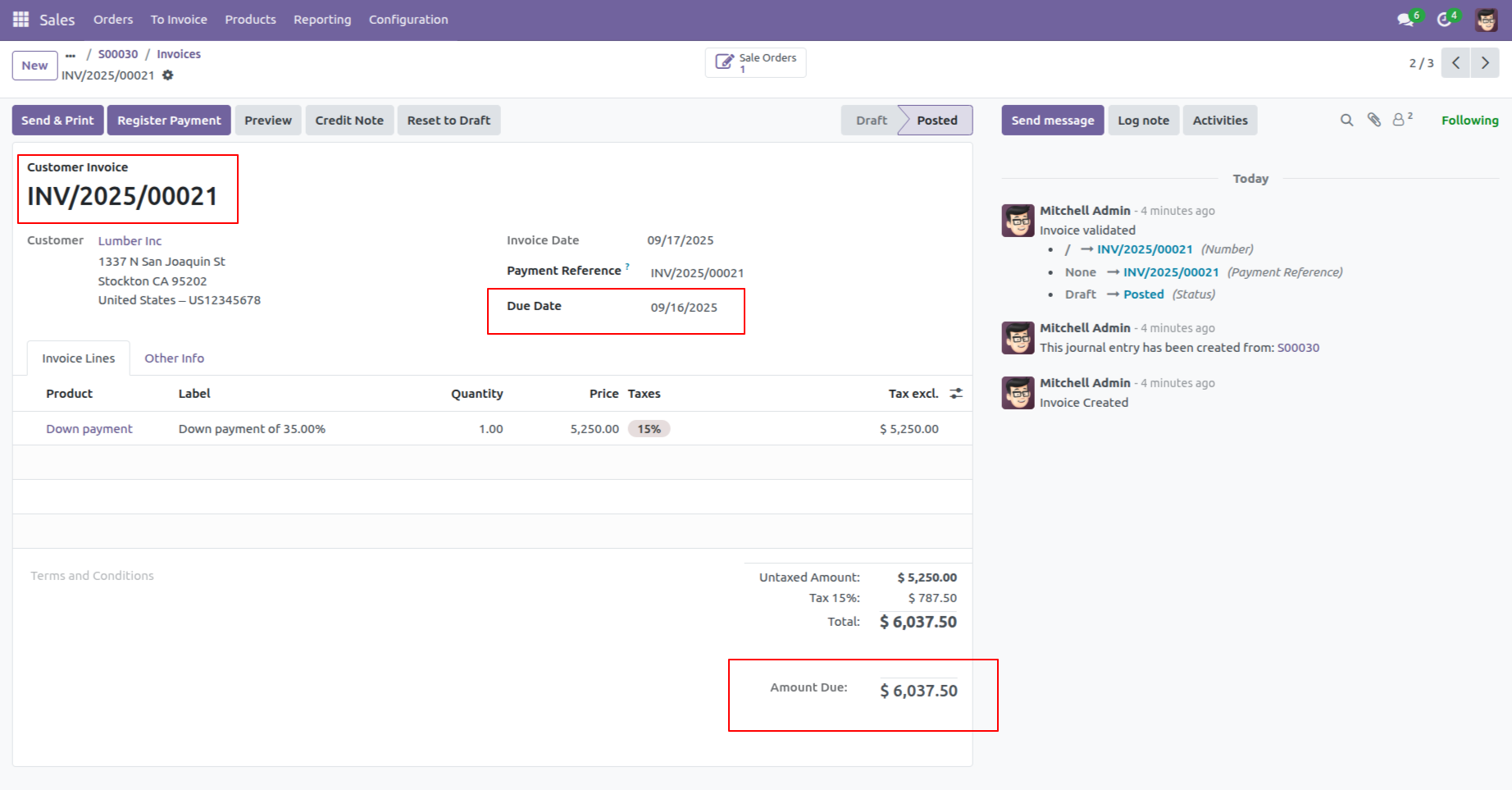Here, you can view the invoices due date and the Due amount.