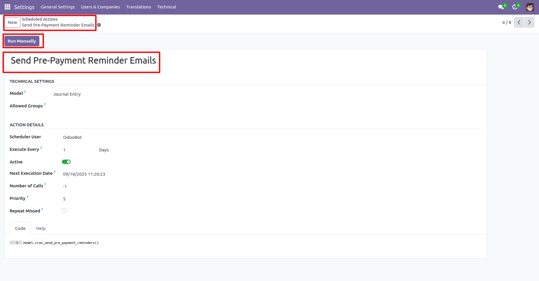 Go to the Schedule Actions ==> Send Pre-Payent Reminder Emails
