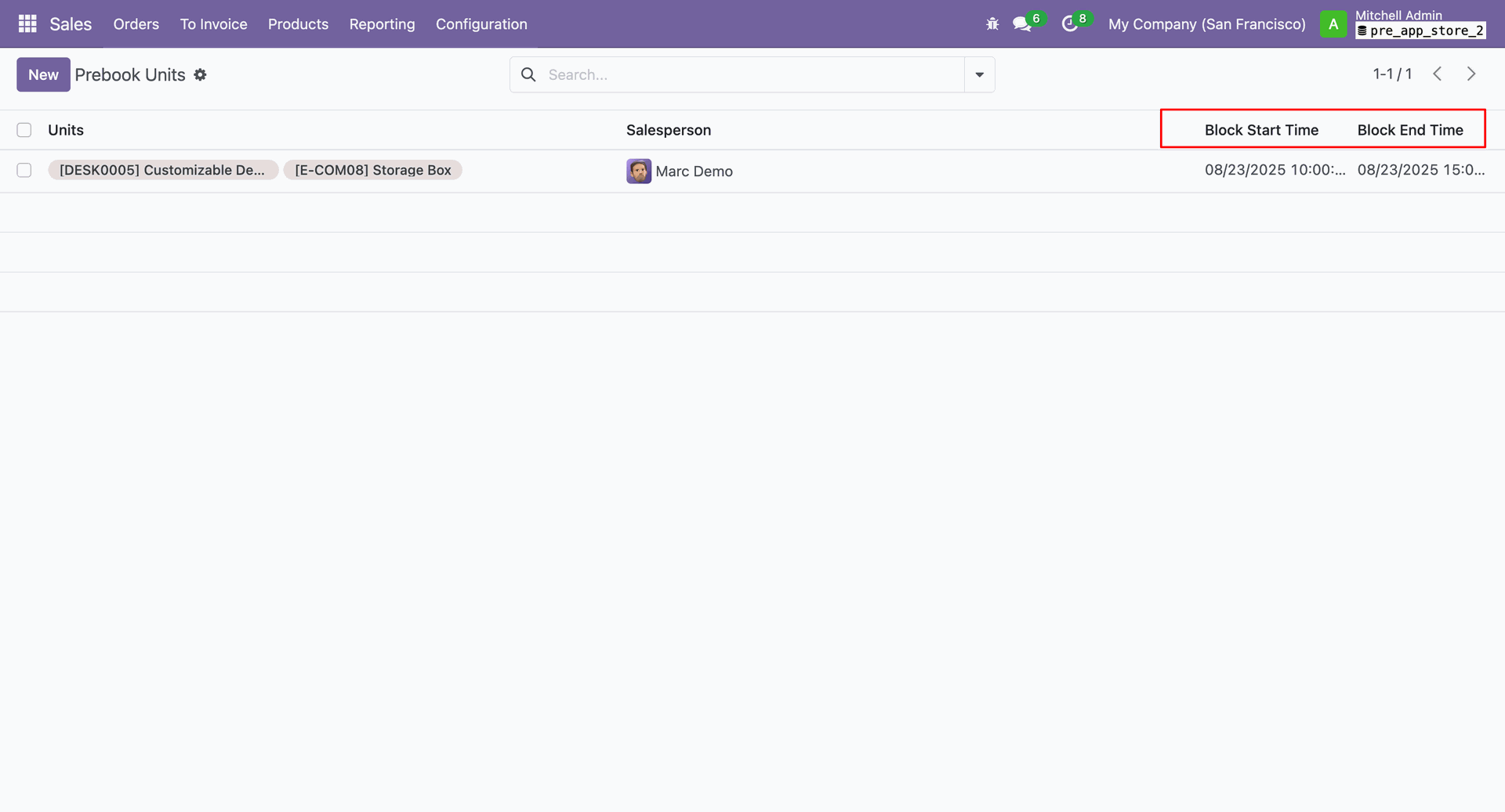 In the list view of “Probook Units”, add the product variants that you want to reserve.