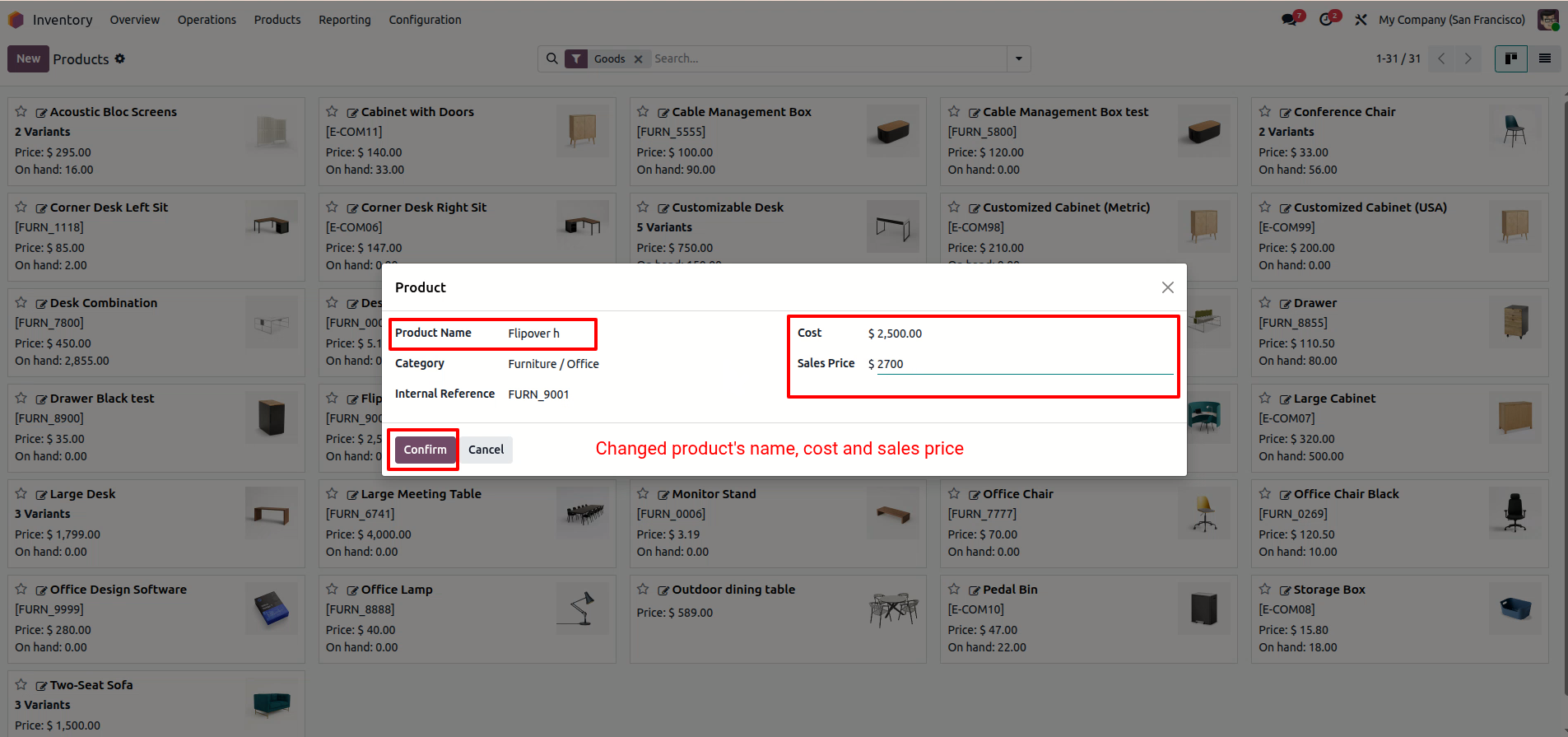 Click Confirm, and you will see the product details are instantly updated in your view.
