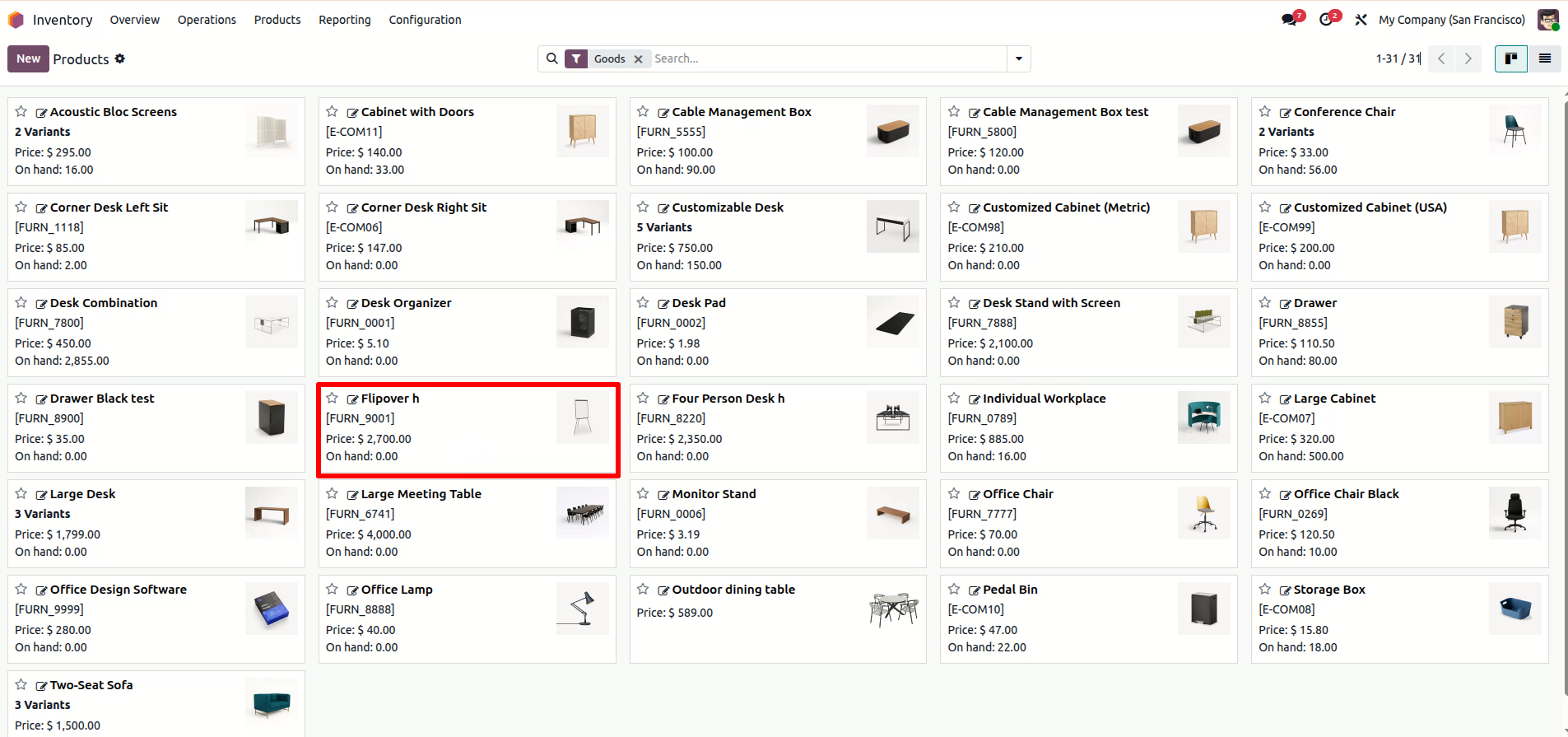 Edit products directly from the Kanban view using the pencil icon on each product card. You can quickly update the Product Name, Sales Price, Cost, Category, or Internal Reference. This eliminates the need to open the full product form and helps save time while managing products efficiently.