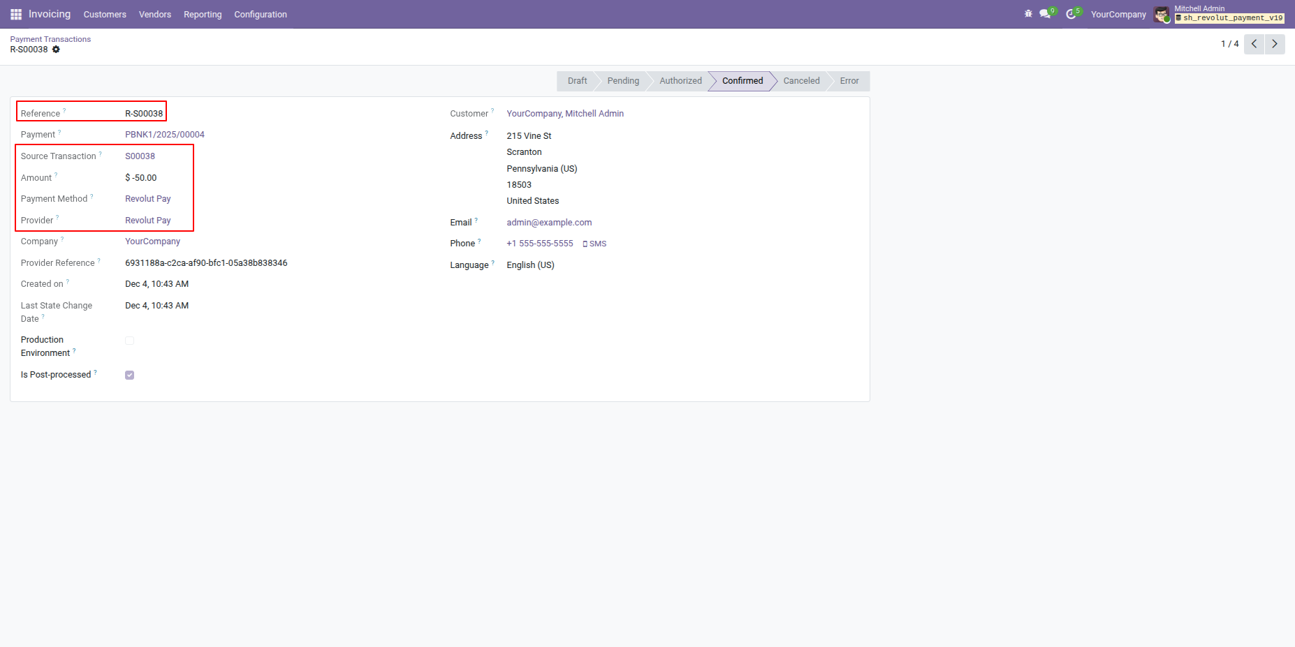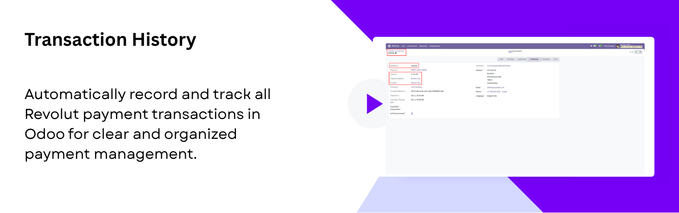 Maintain a transaction history in Odoo for all payments processed through Revolut, making payments straightforward.