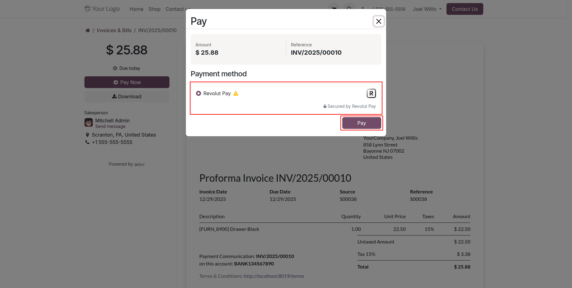 Select "Revolut" in checkout and click "Pay Now".