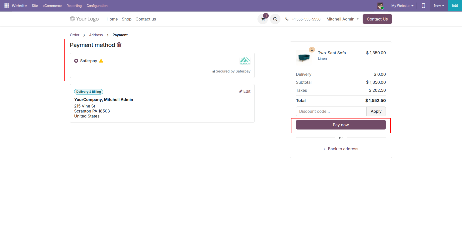 Select "Saferpay" in checkout and click "Pay Now".