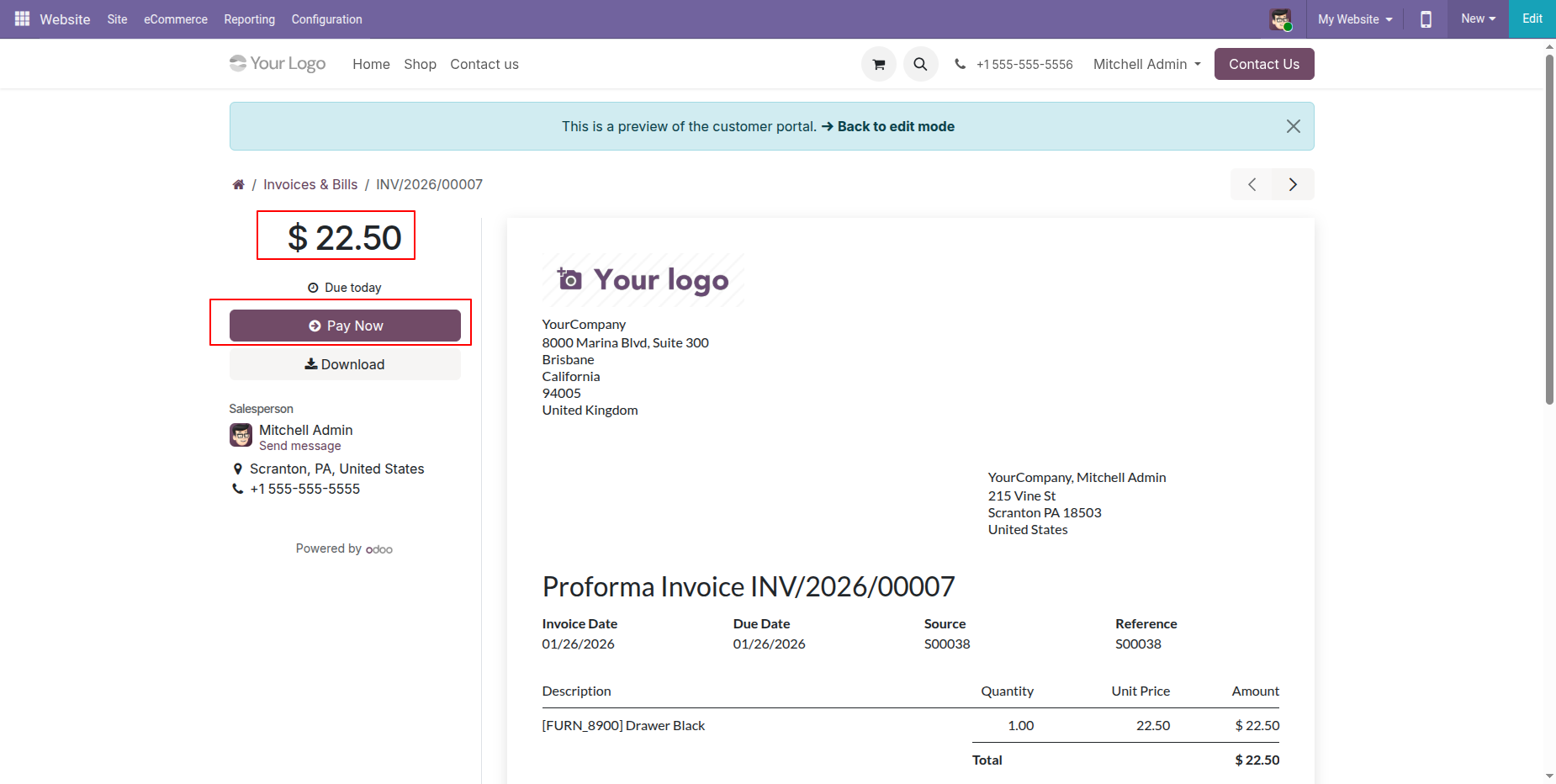Click the Pay Now button at the portal for portal payment.