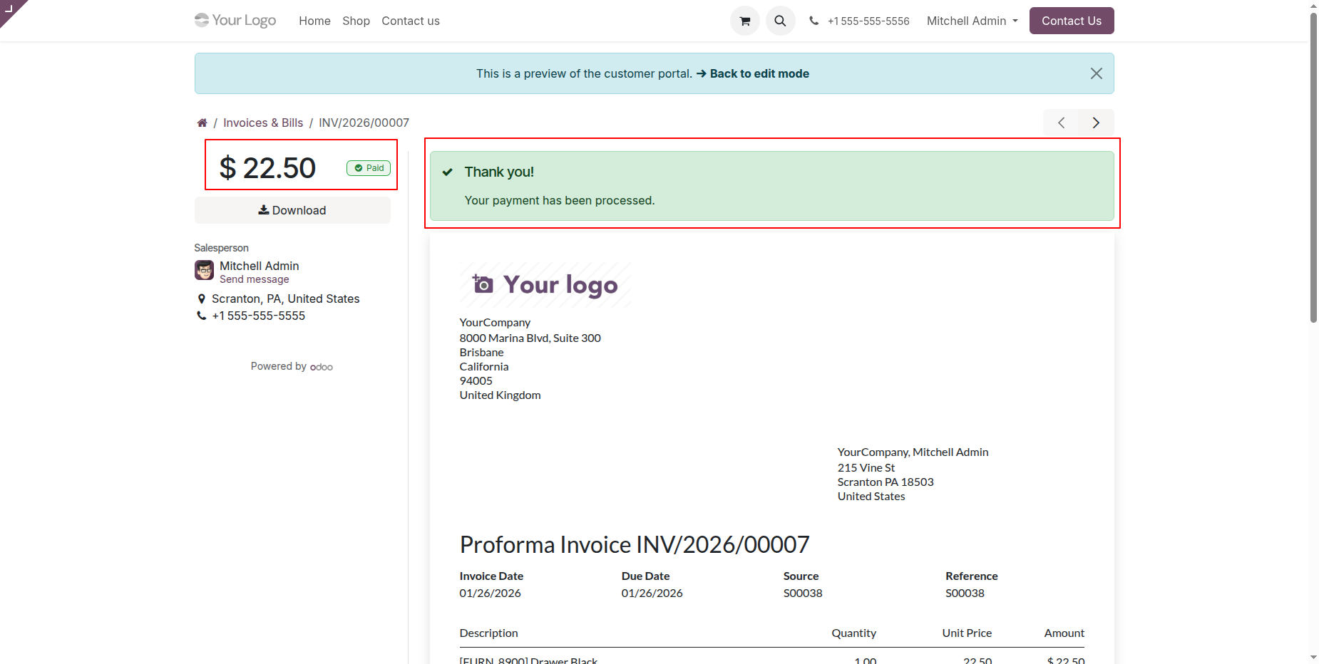 Payment transaction form view with all details.