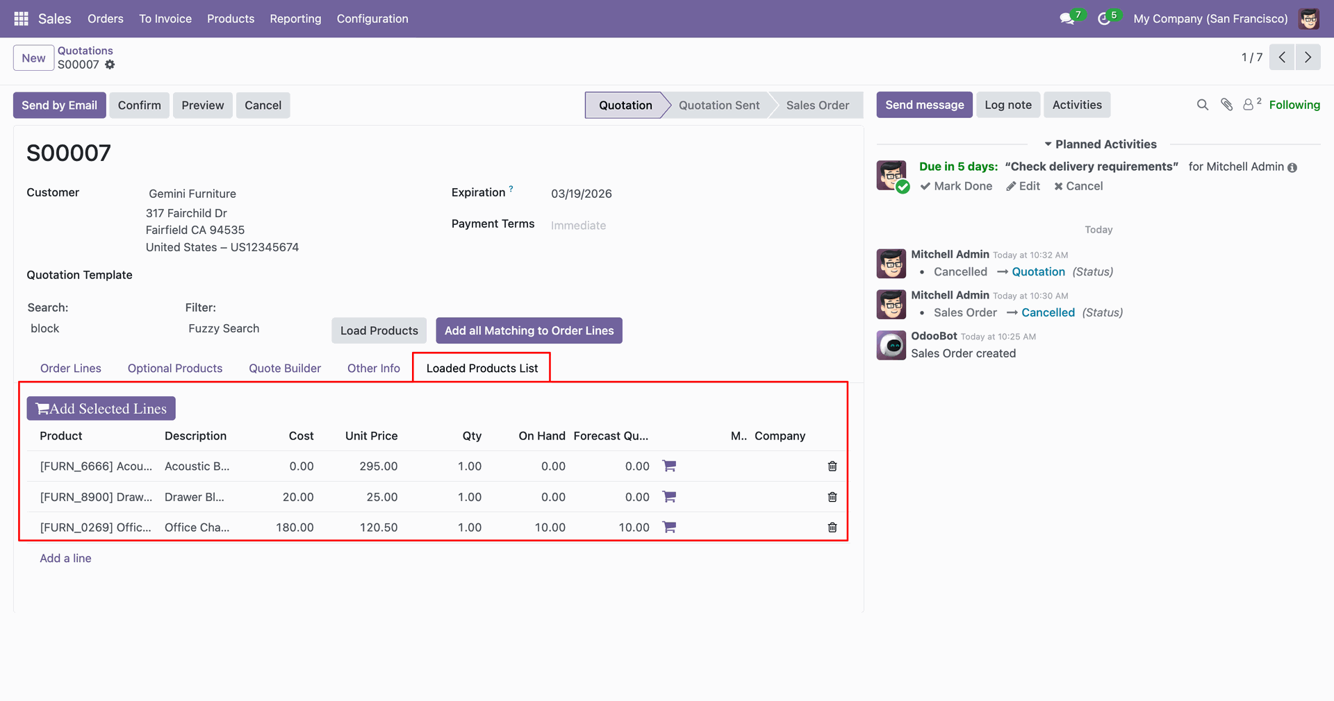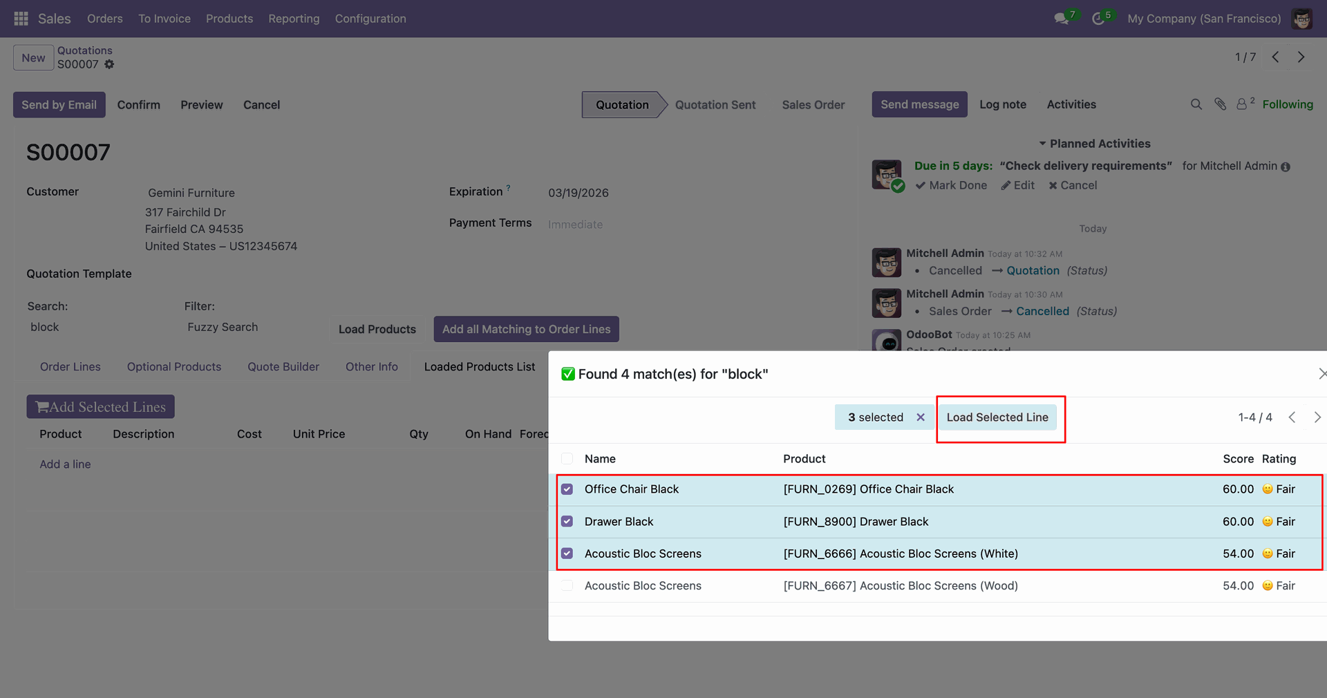 Select the products and click on the 'Load Selected Line' button.