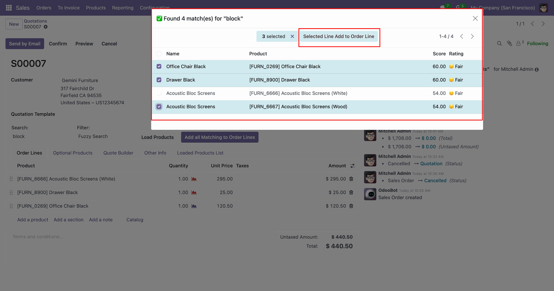 - You can search for products as per the score in the Sale Order.