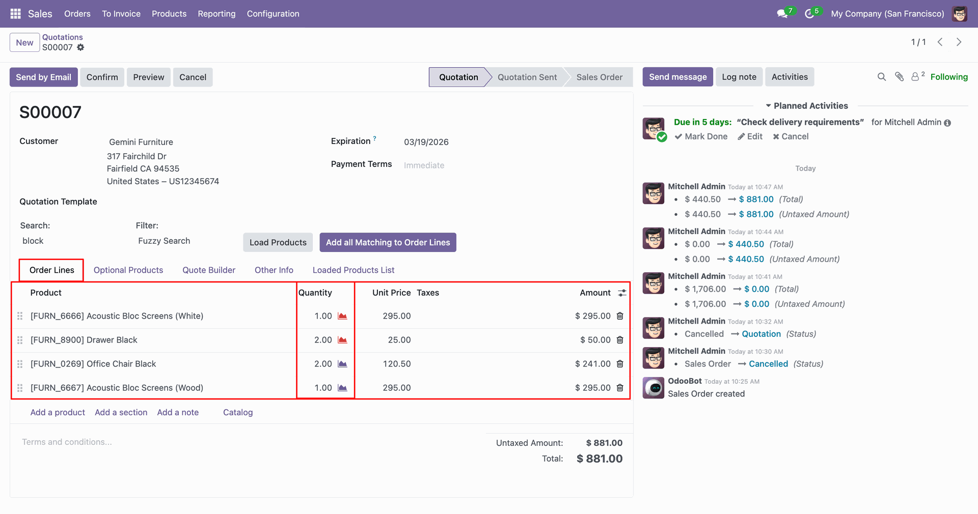 Products are added to the order line.