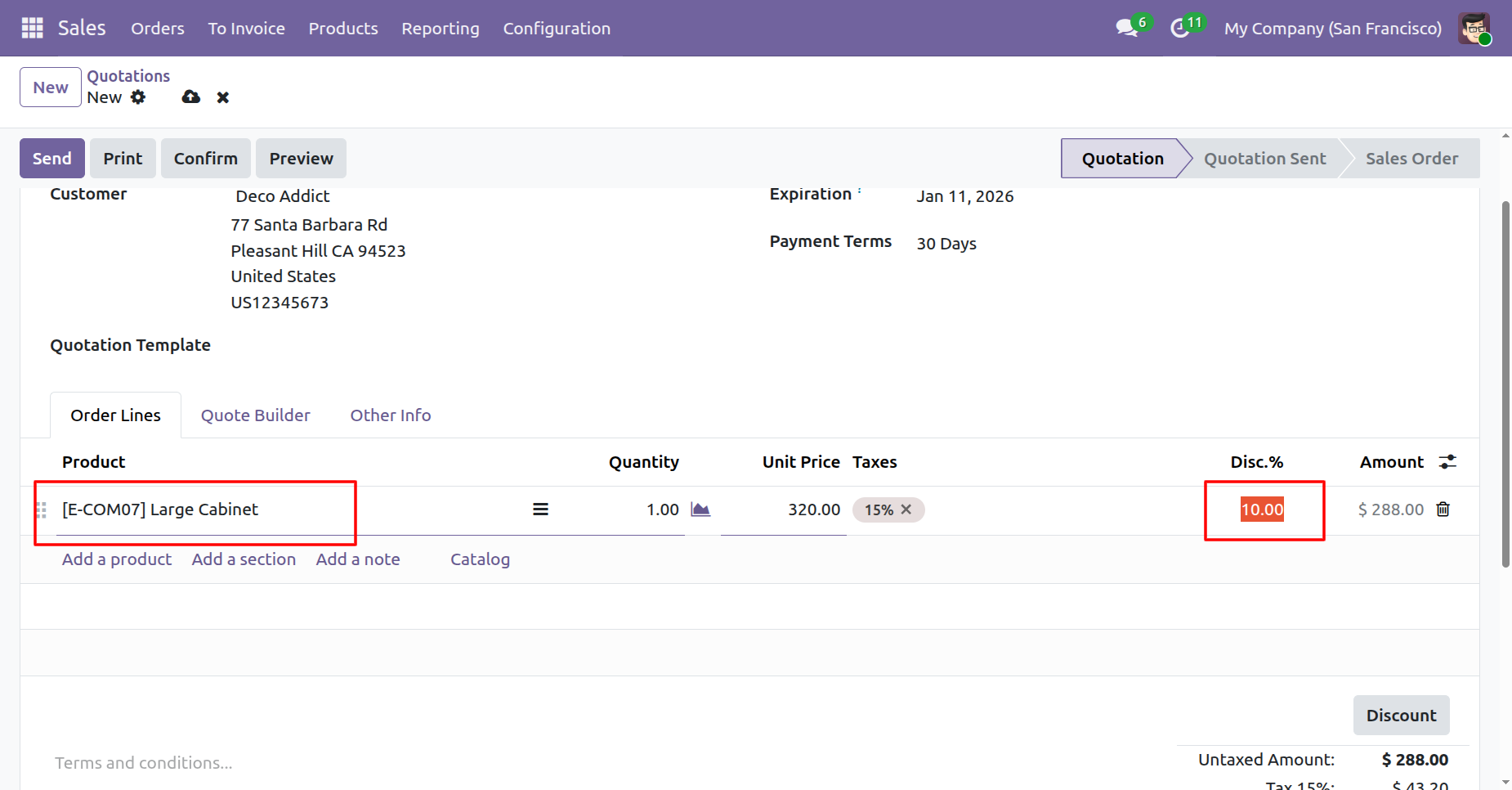 If the applied discount exceeds the allowed limit in the quotation, it doesn't allow the quotation to be confirmed.