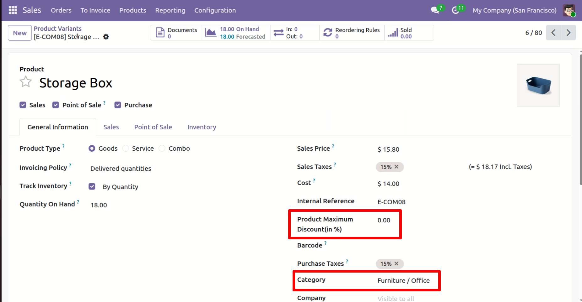 "Product Category Maximum Discount" field in Product Category, where the discount limit is defined for product categories.