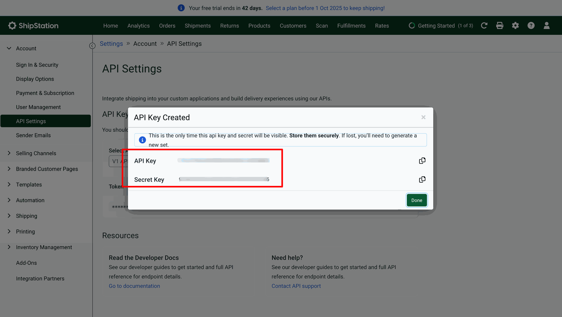 Here you can see the generated API key & Secret key. Click on the 'Done' button.