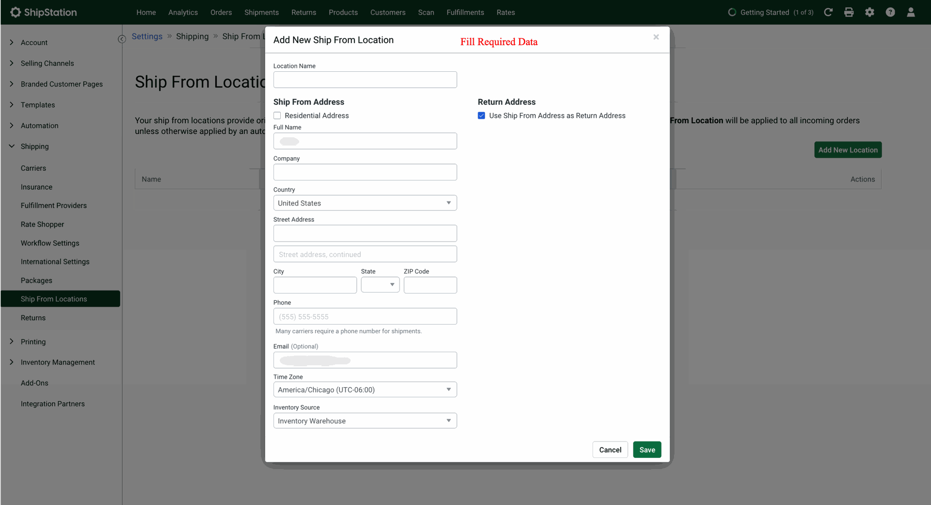 Set up and manage ShipStation Ship-From Locations within your workflow to define accurate shipping.