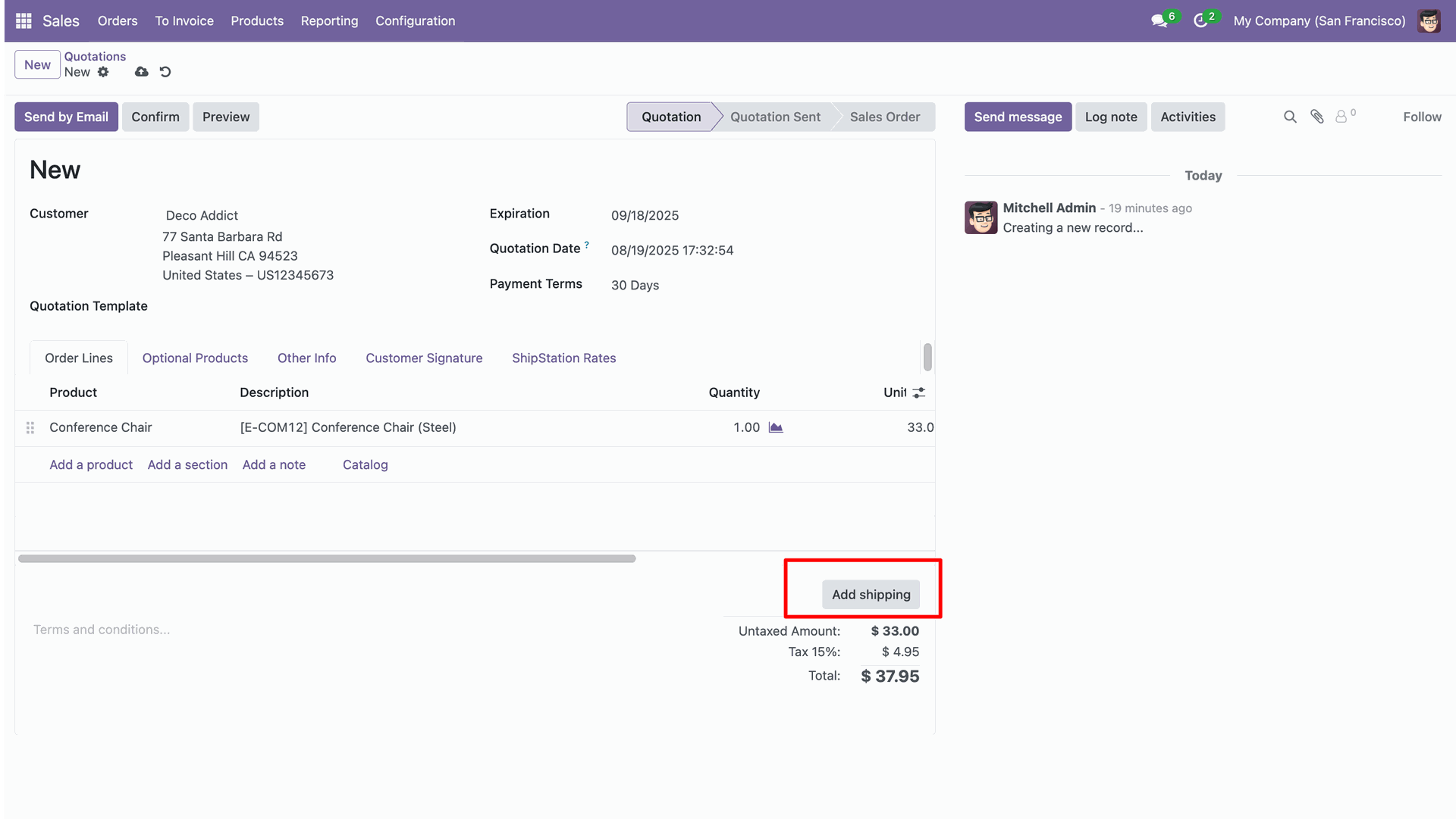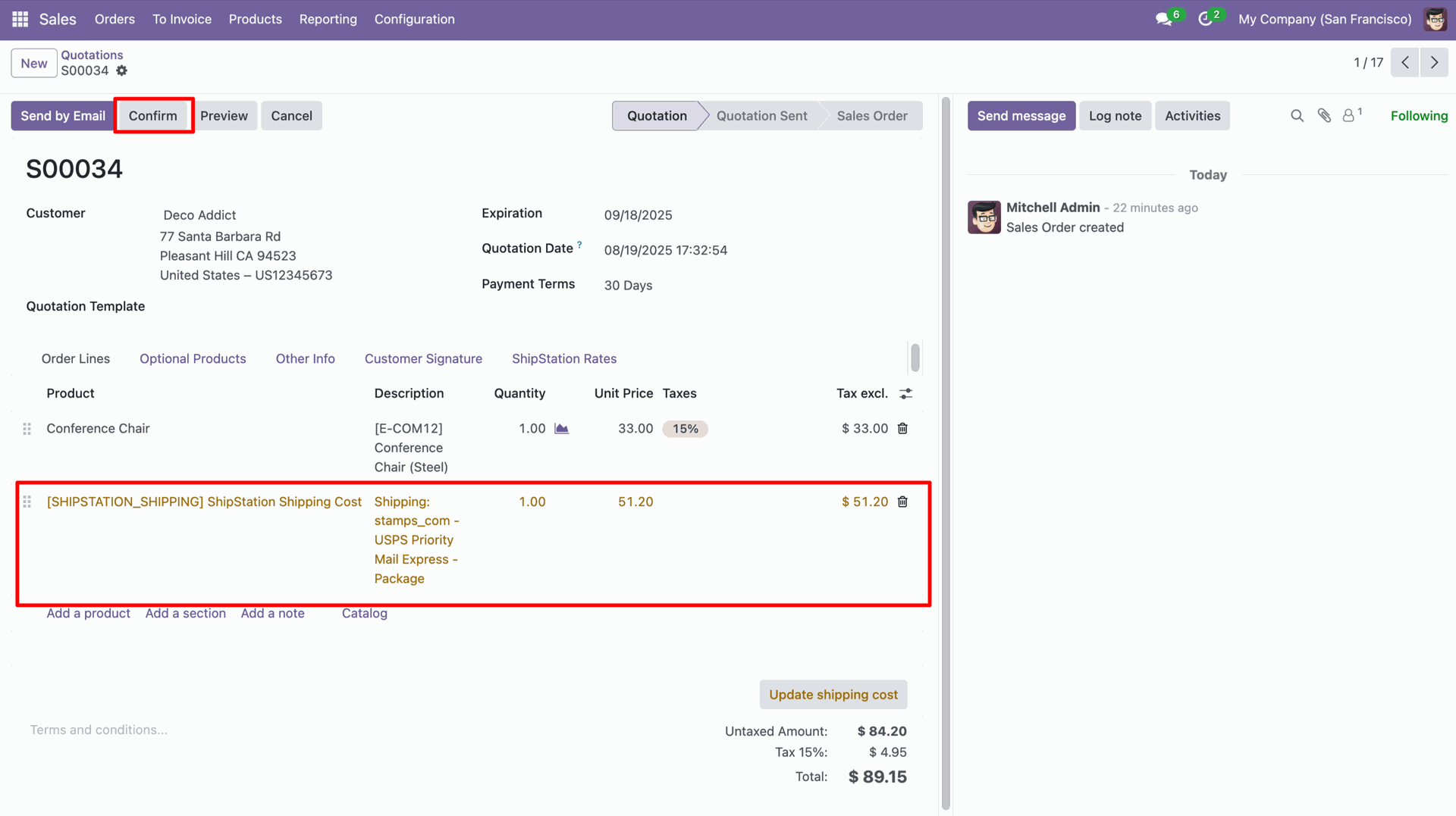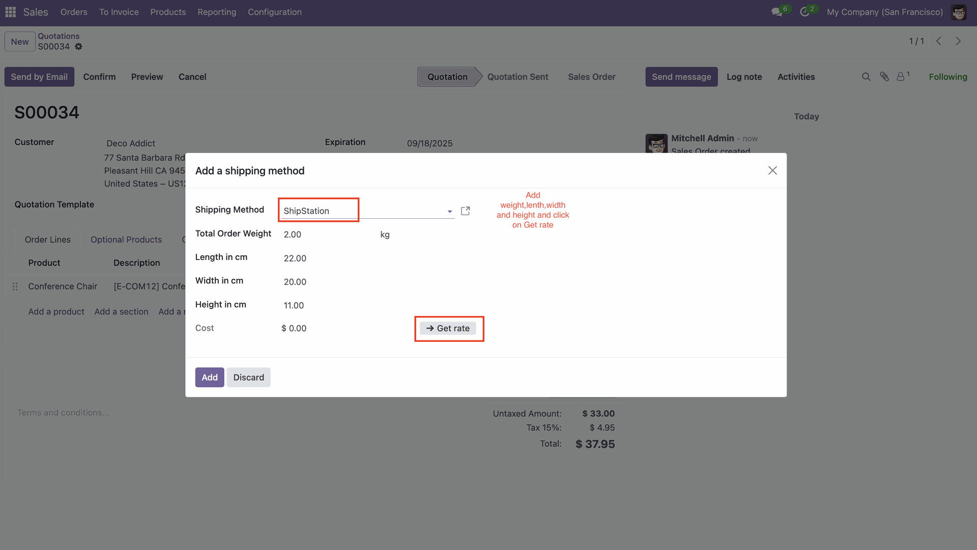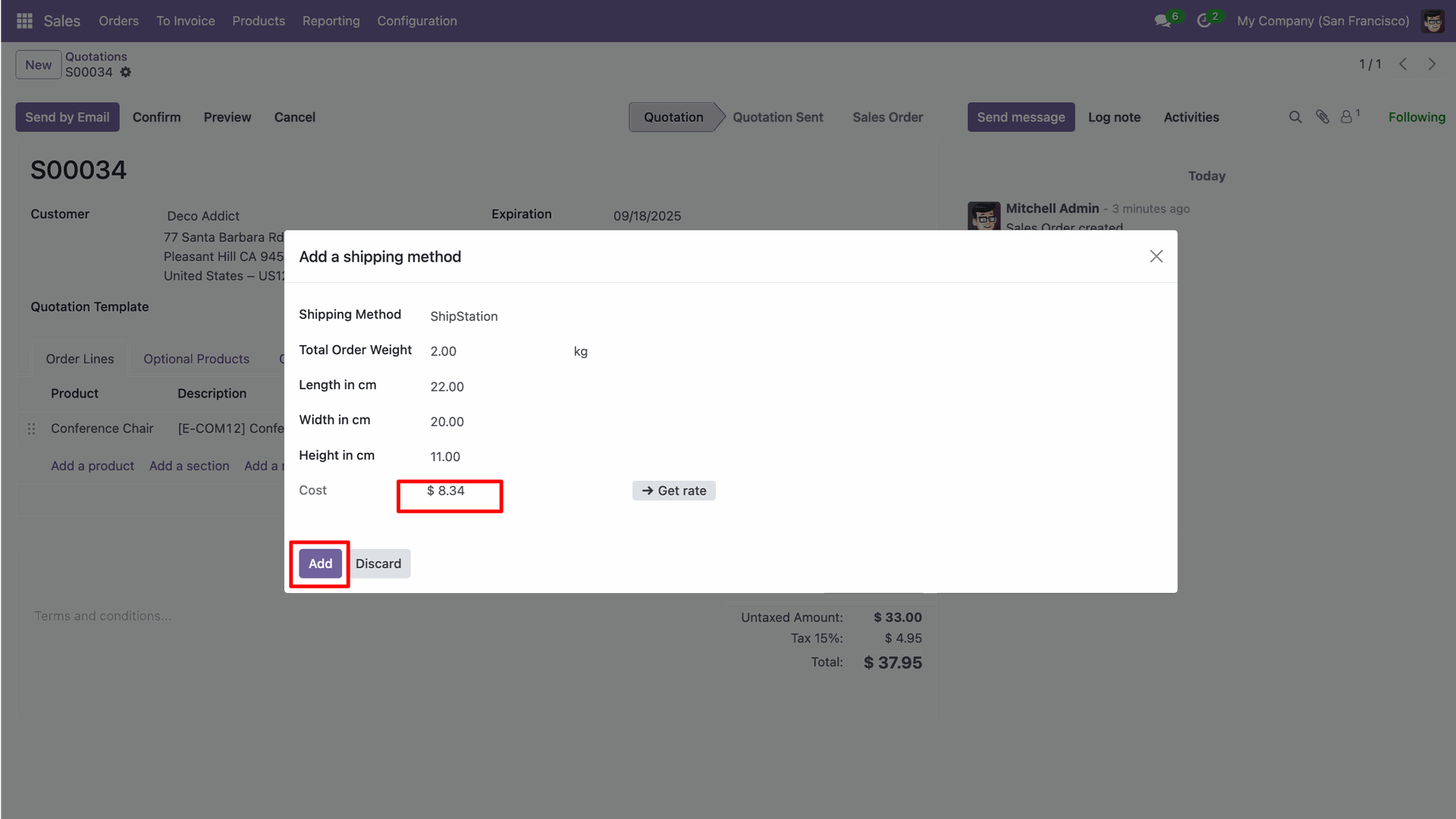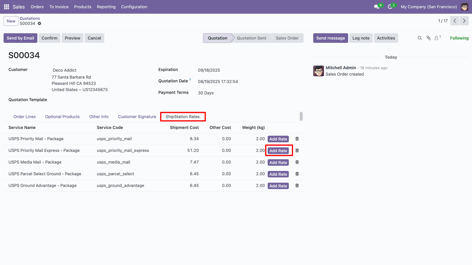 Automatic rate fetching to provide live ShipStation shipping prices during Quotation creation.