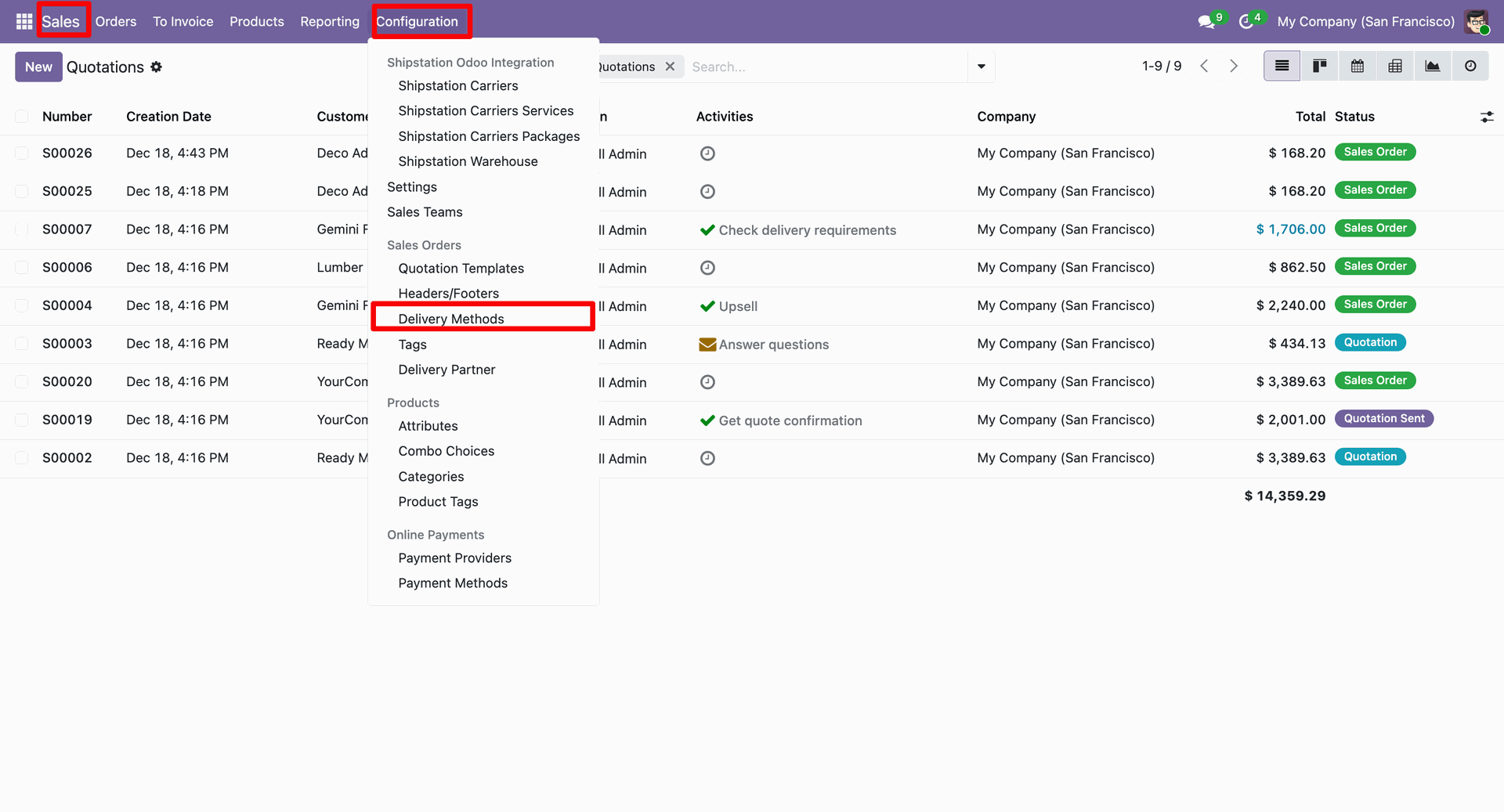 Go to the sales "Configuration" ==> Delivery Methods.