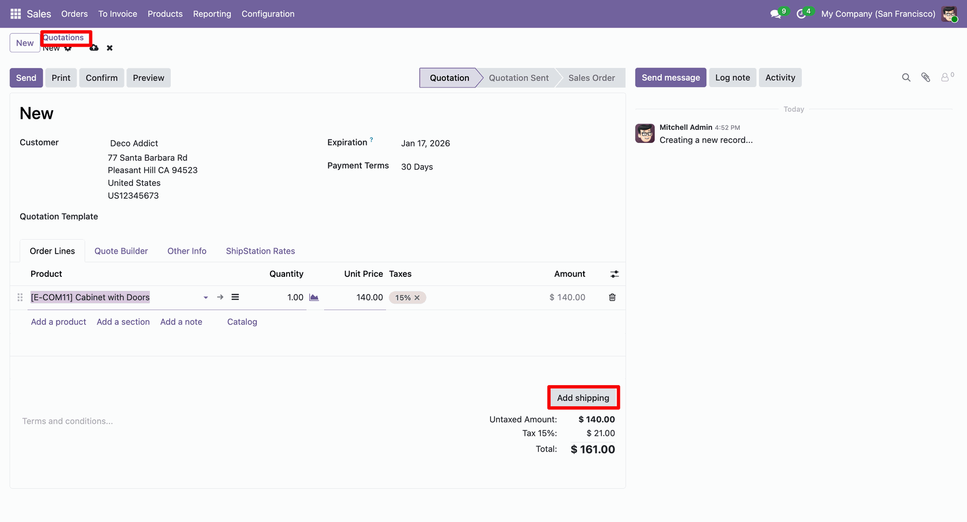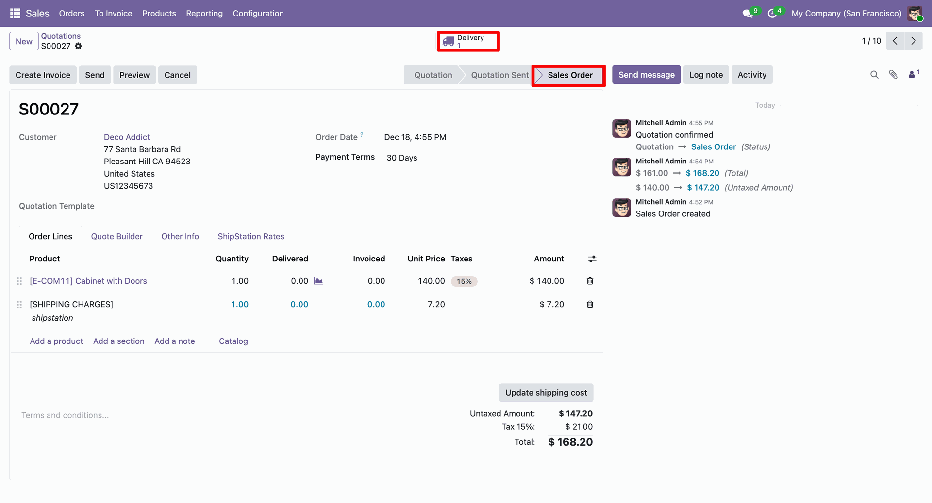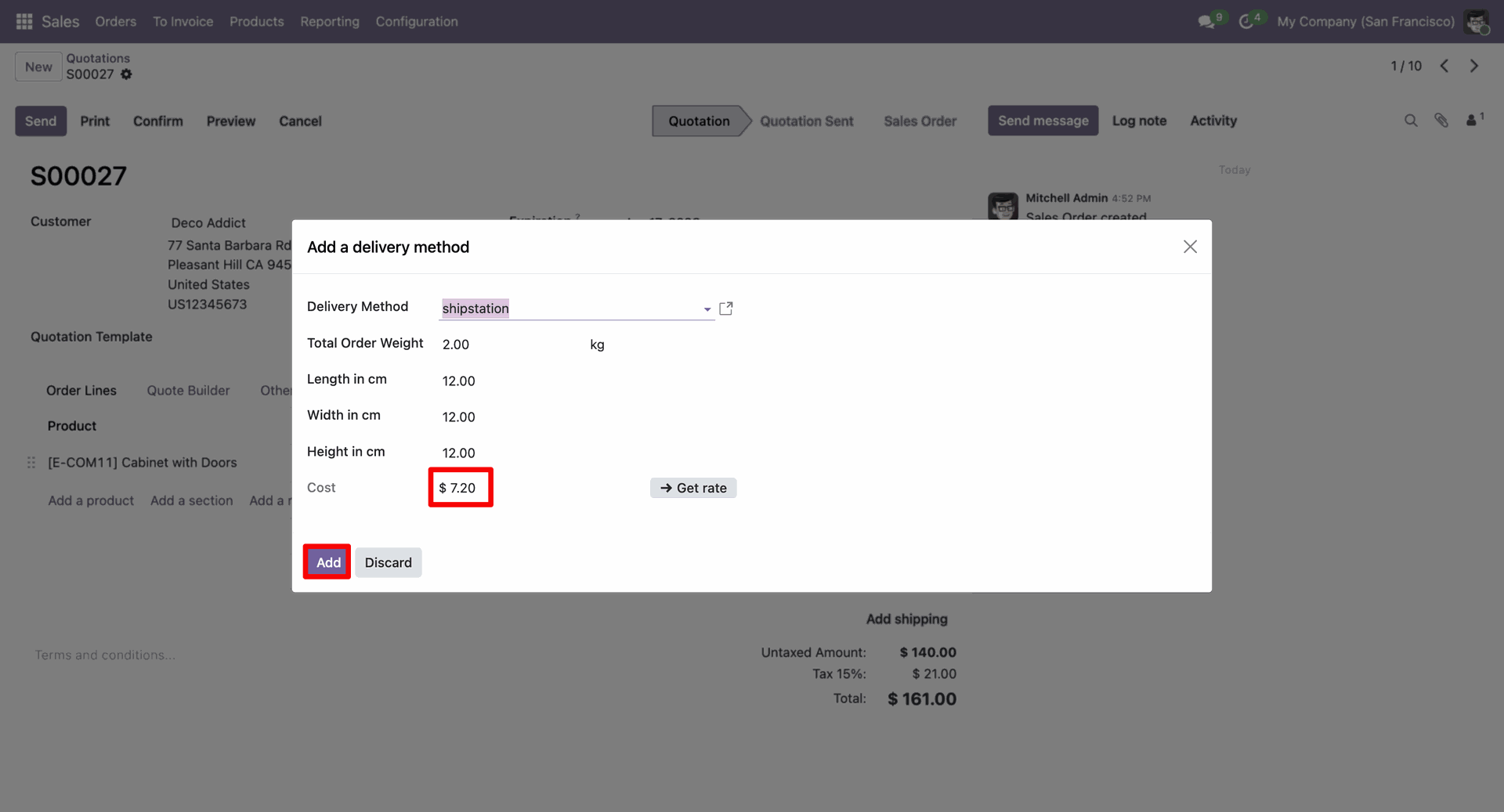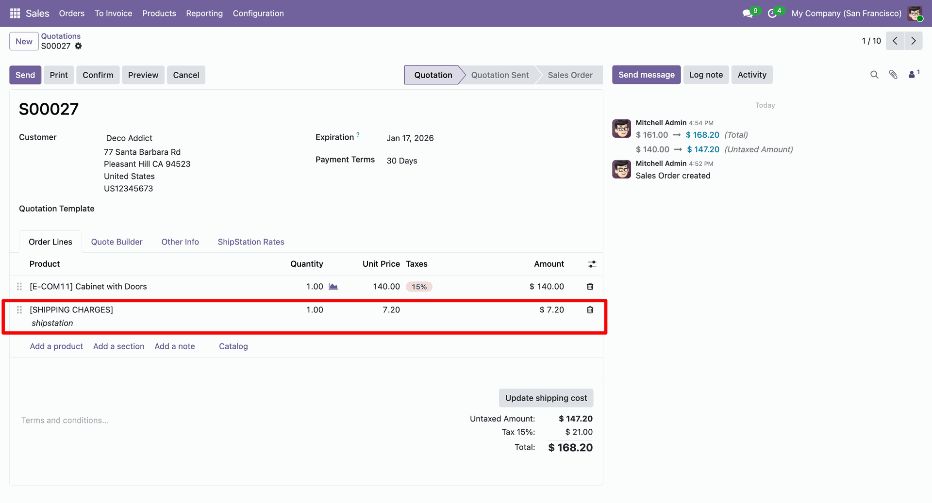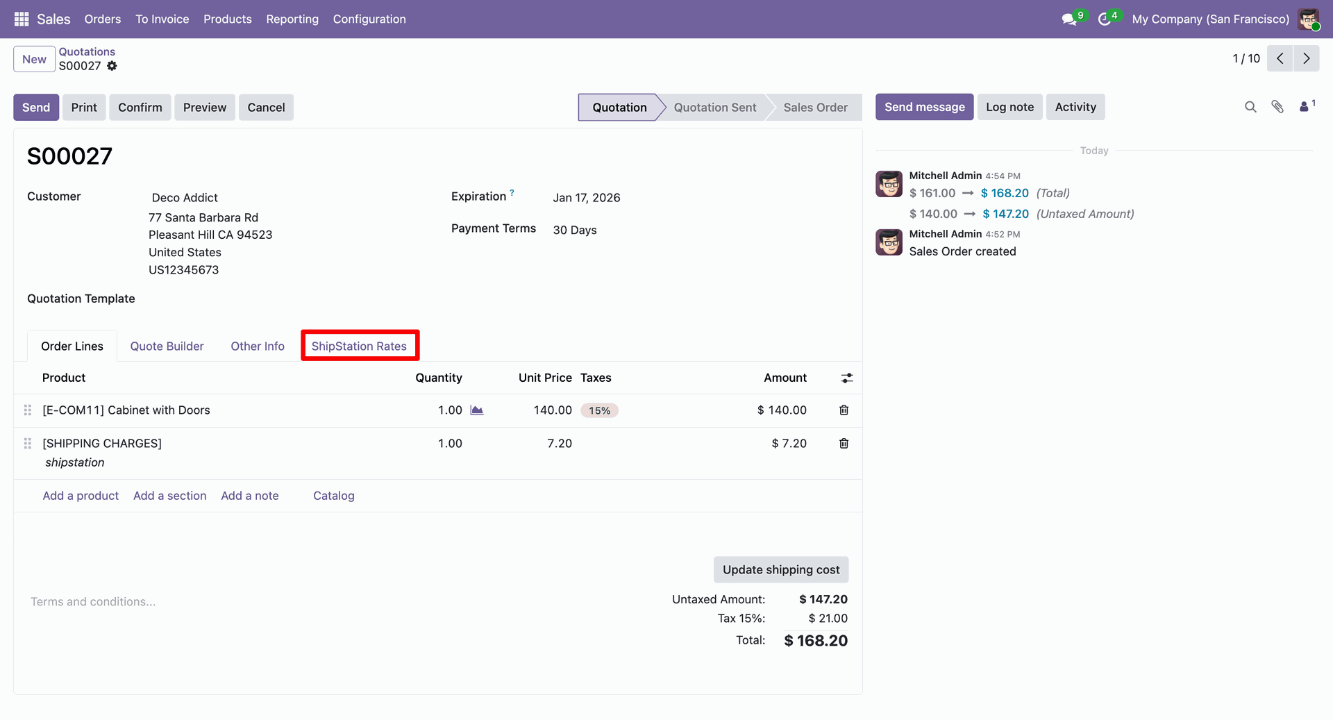 Here you can see the added ShipStation rate. Now confirm the quotation.