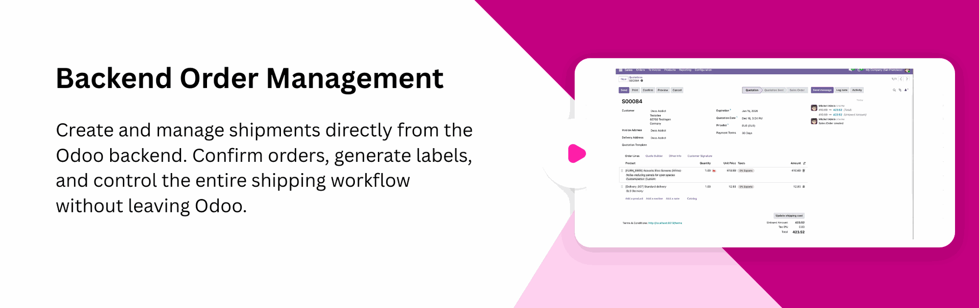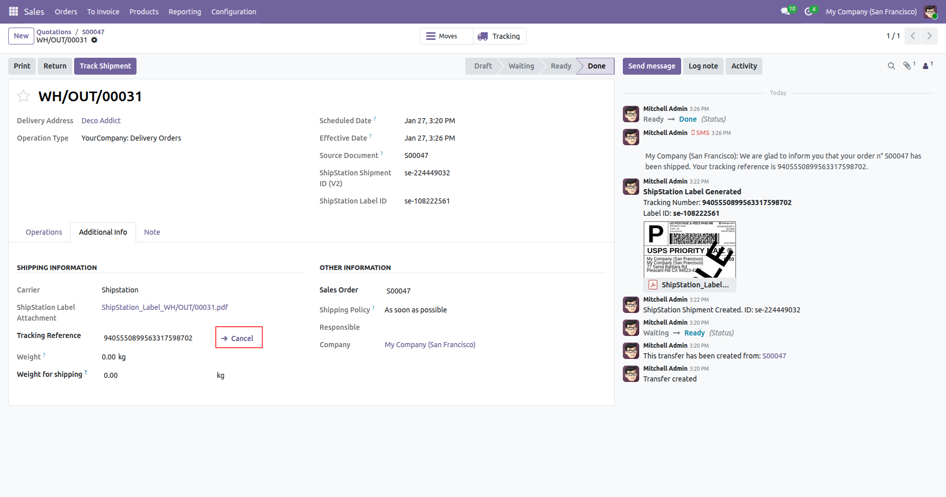 Cancel shipments instantly from Odoo to avoid incorrect deliveries and maintain accurate shipping records.