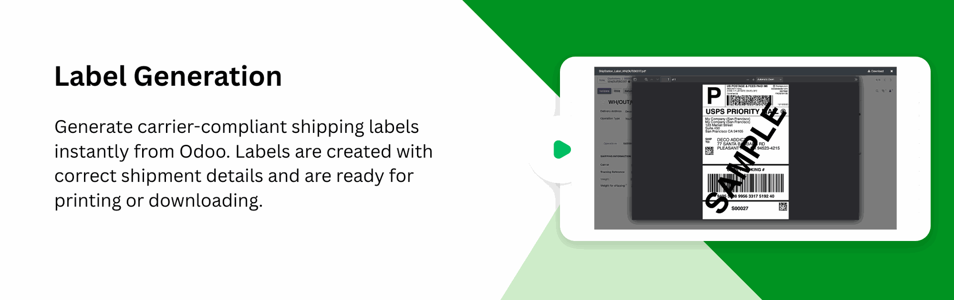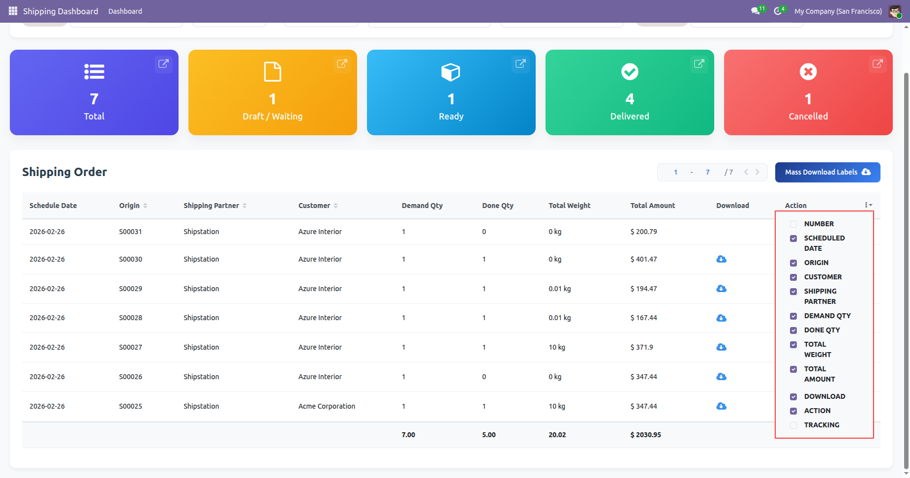 Generate multiple shipping labels in one action directly from Odoo, allowing you to process bulk delivery orders faster.