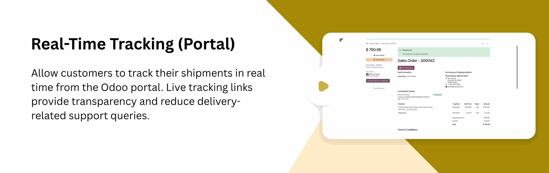 Track shipments in real-time - admins can monitor deliveries from the backend, while customers can track from the portal.