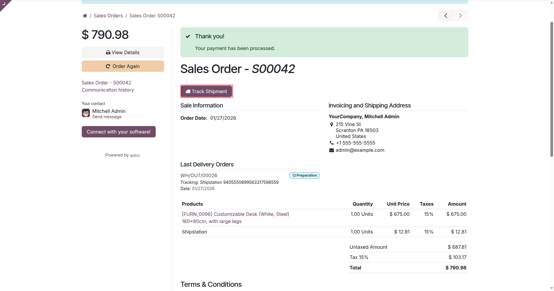 Portal order with tracking details.