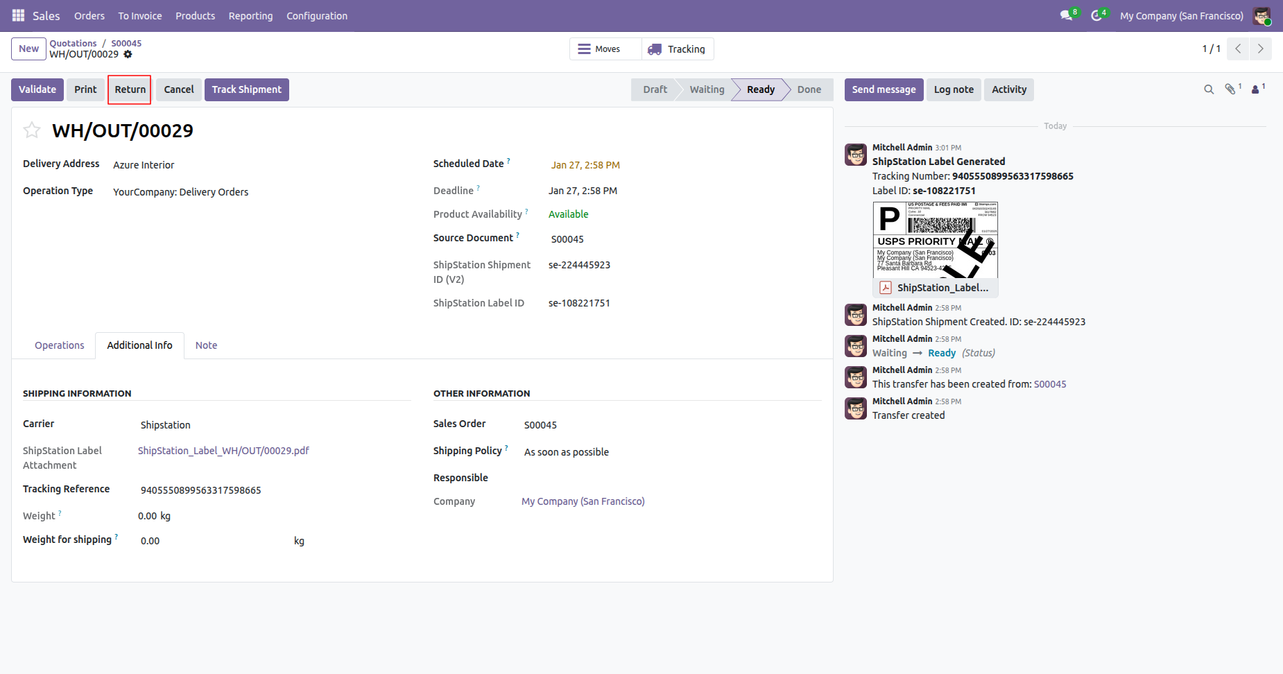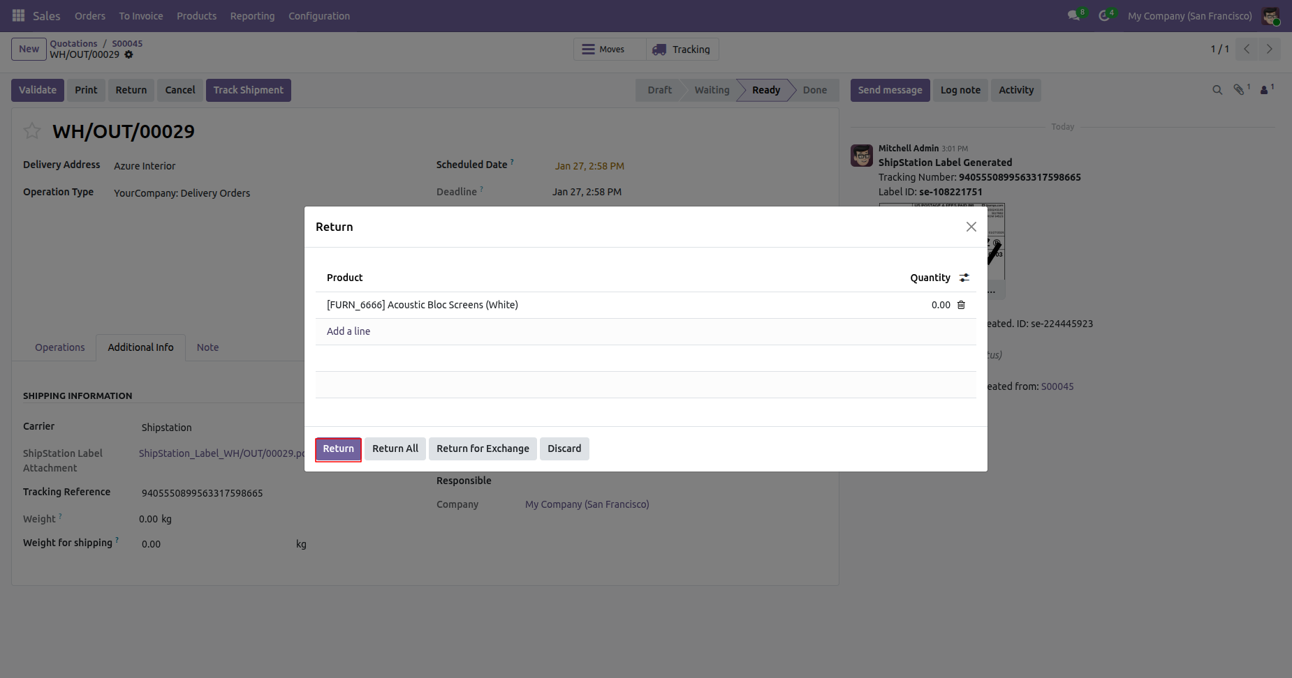 Click "Return" to return the shipment.