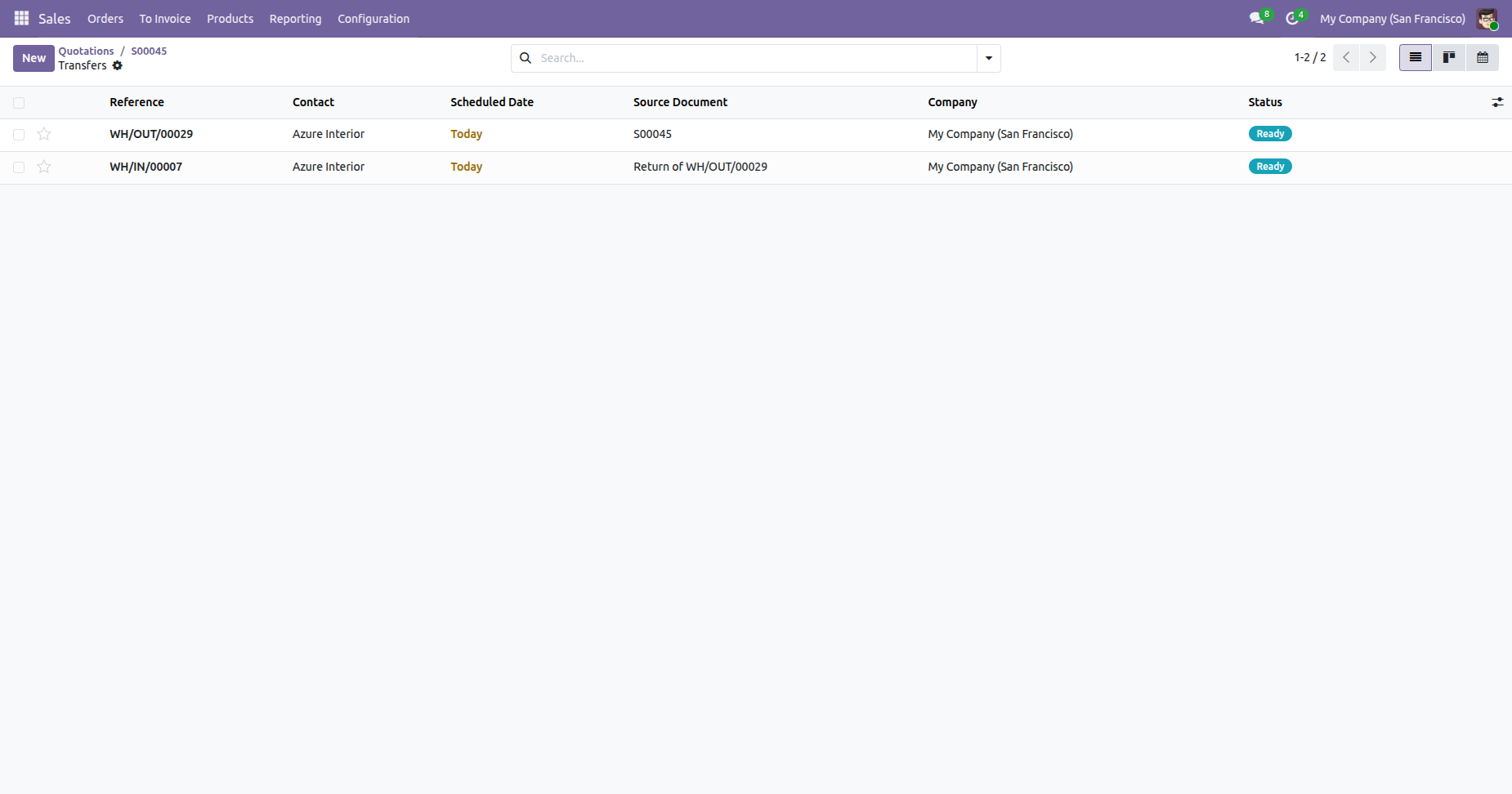 Confirm the quotation, and open the delivery order.