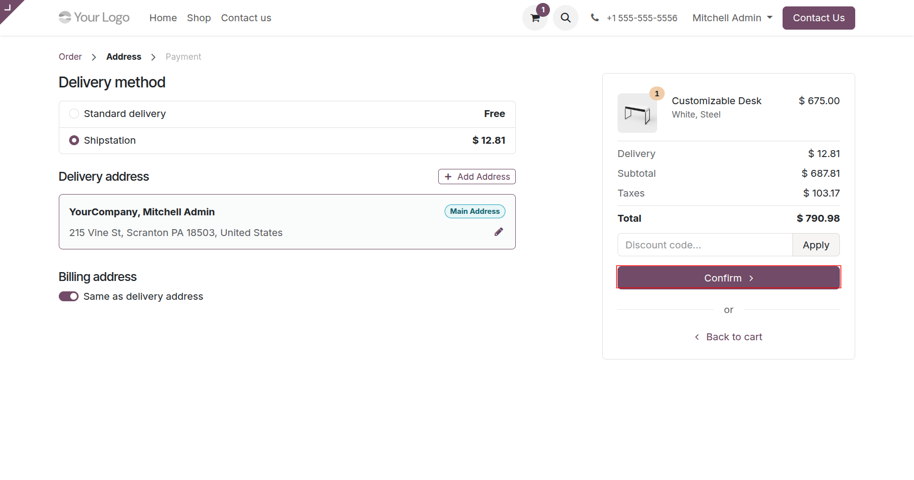 Select the ShipStation delivery method.