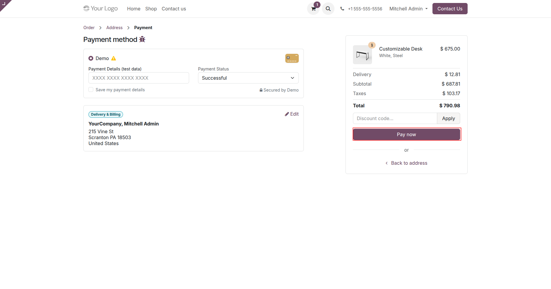 Enter payment details and click Pay Now.