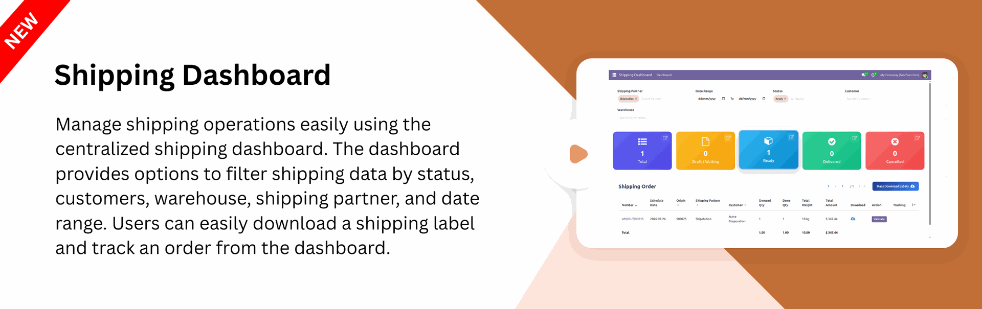Get a centralized view of all shipping activities in one place. The dashboard provides quick operational insights.