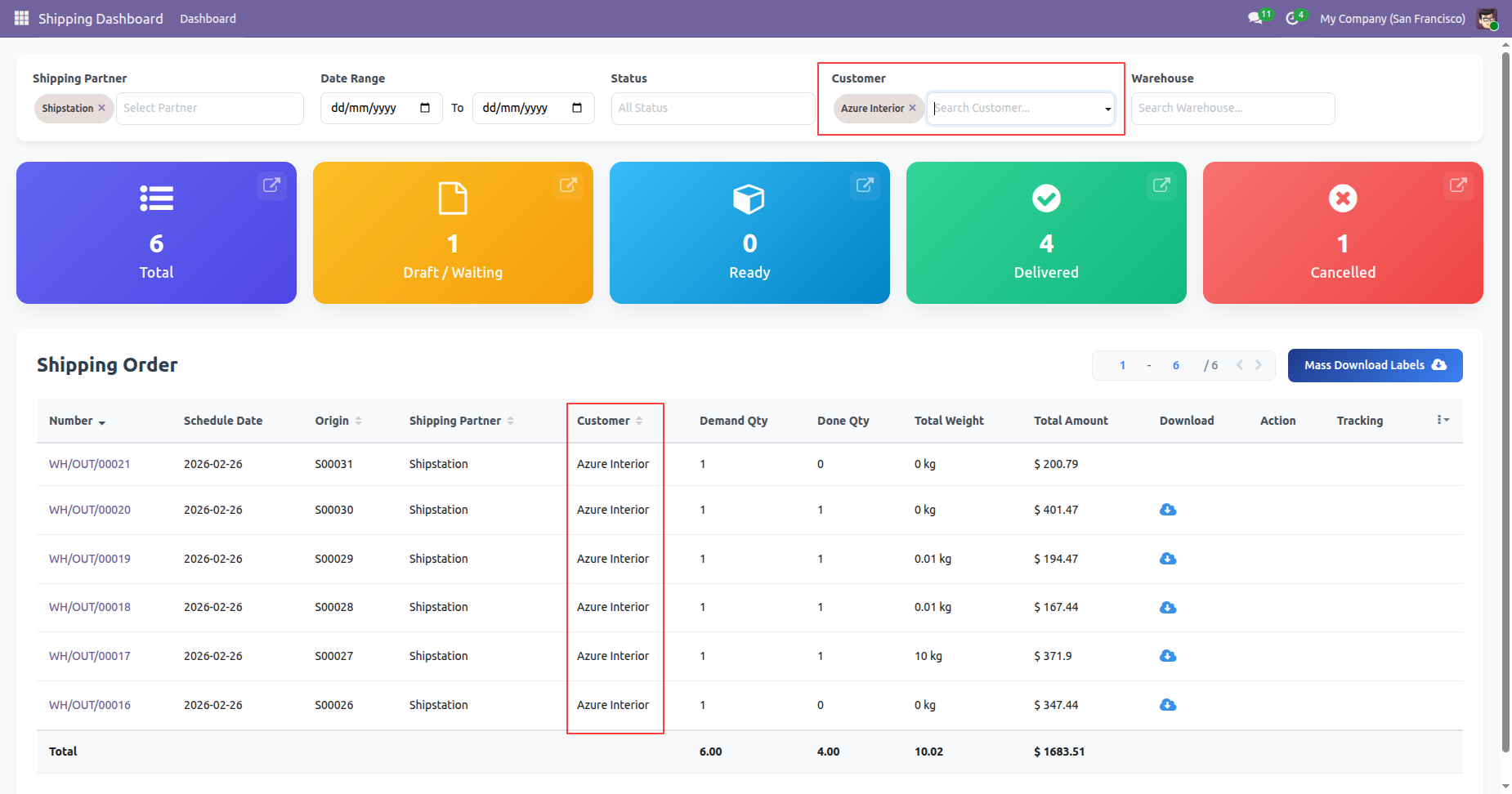 Click 'Mass Download Labels' to download all at single click, You can download and track shipping from the dashboard.