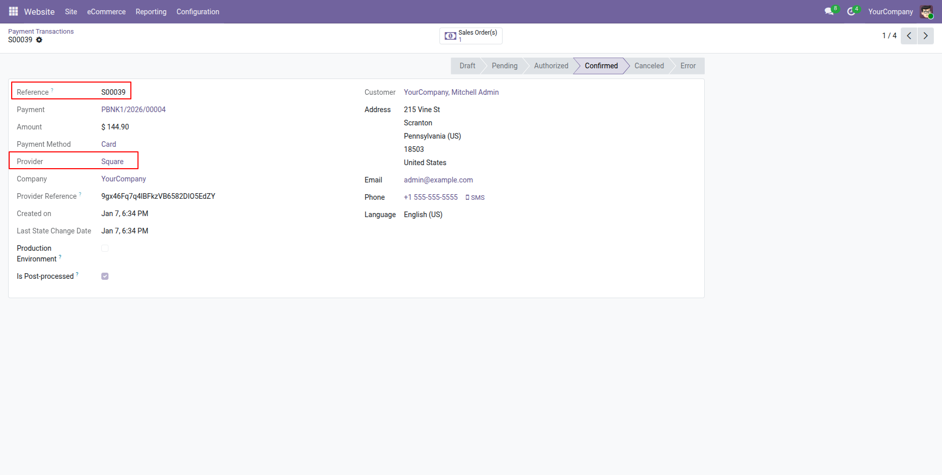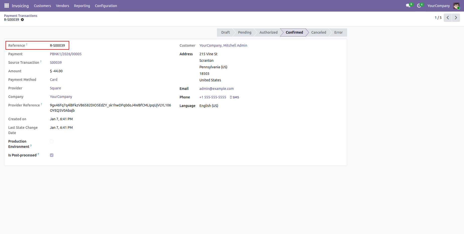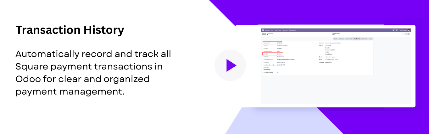 Maintain a transaction history in Odoo for all payments processed through Square, making payments straightforward.