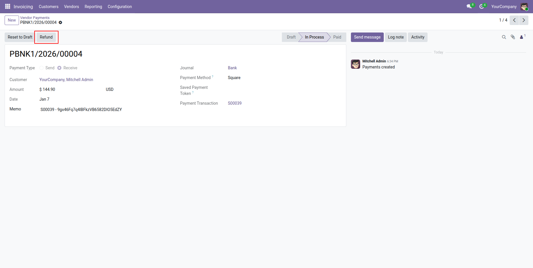 Process refunds directly from Odoo for any order paid through Square. Ensuring smooth handling of cancellations.