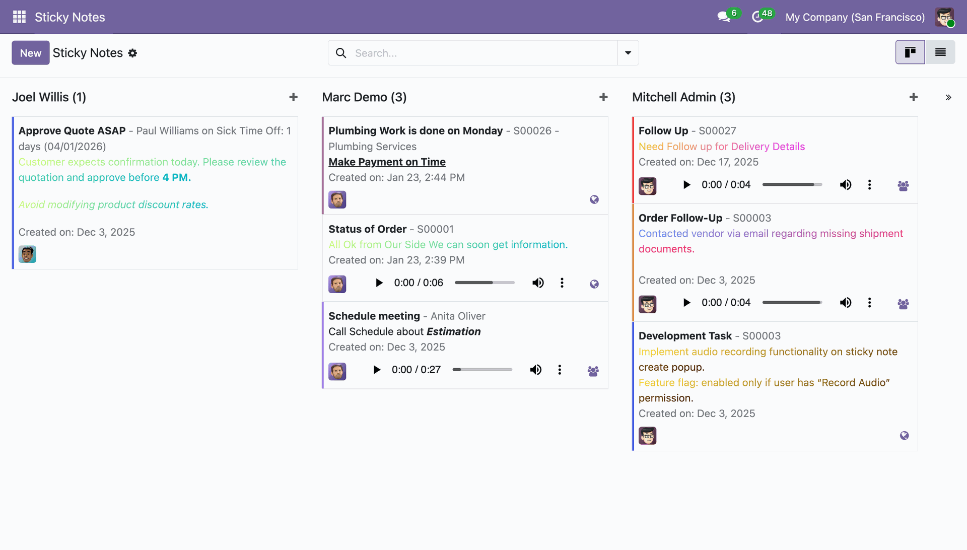 Attach sticky notes to any Odoo form view, including Sales Orders, Contacts, Tasks, Invoices, and more.