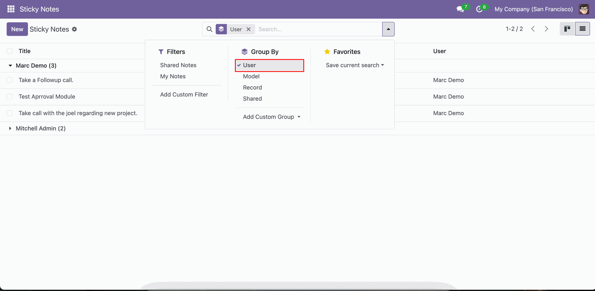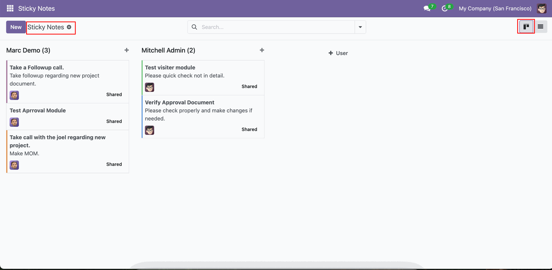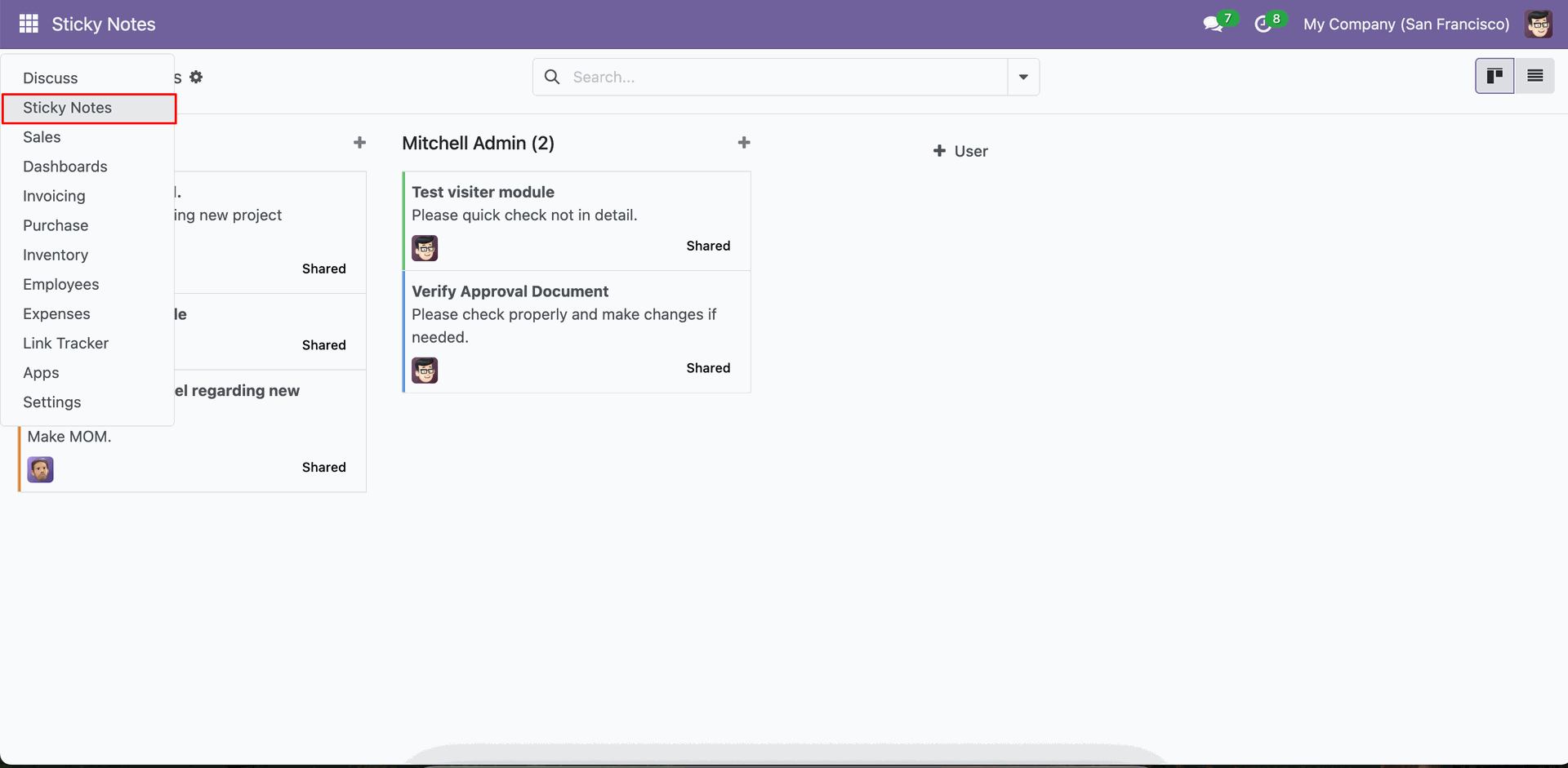 Using this module, users can easily create, manage, and organize notes directly within Odoo. It helps record important reminders, ideas, or tasks and keeps them accessible anytime. Notes can be assigned to specific users for better organization. The simple “Pin” feature makes note-taking quick, efficient, and visually clear.