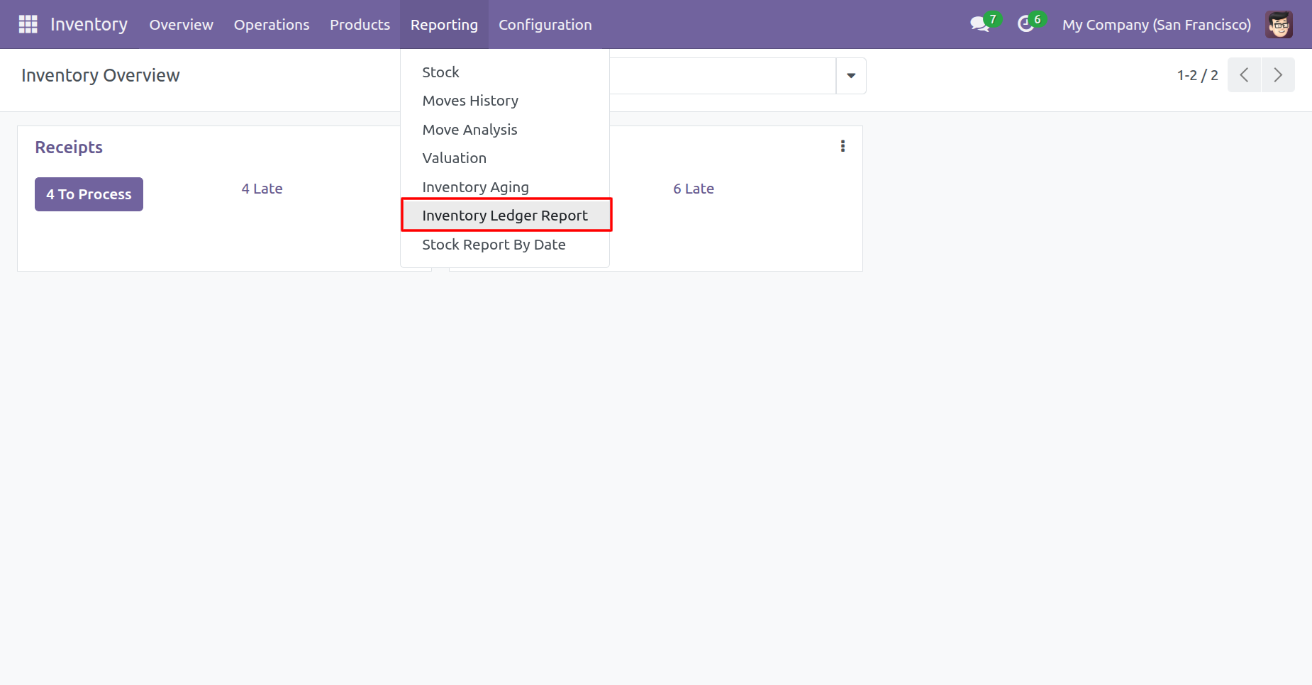 Go to the Inventory configurations ==> Inventory Ledger Report