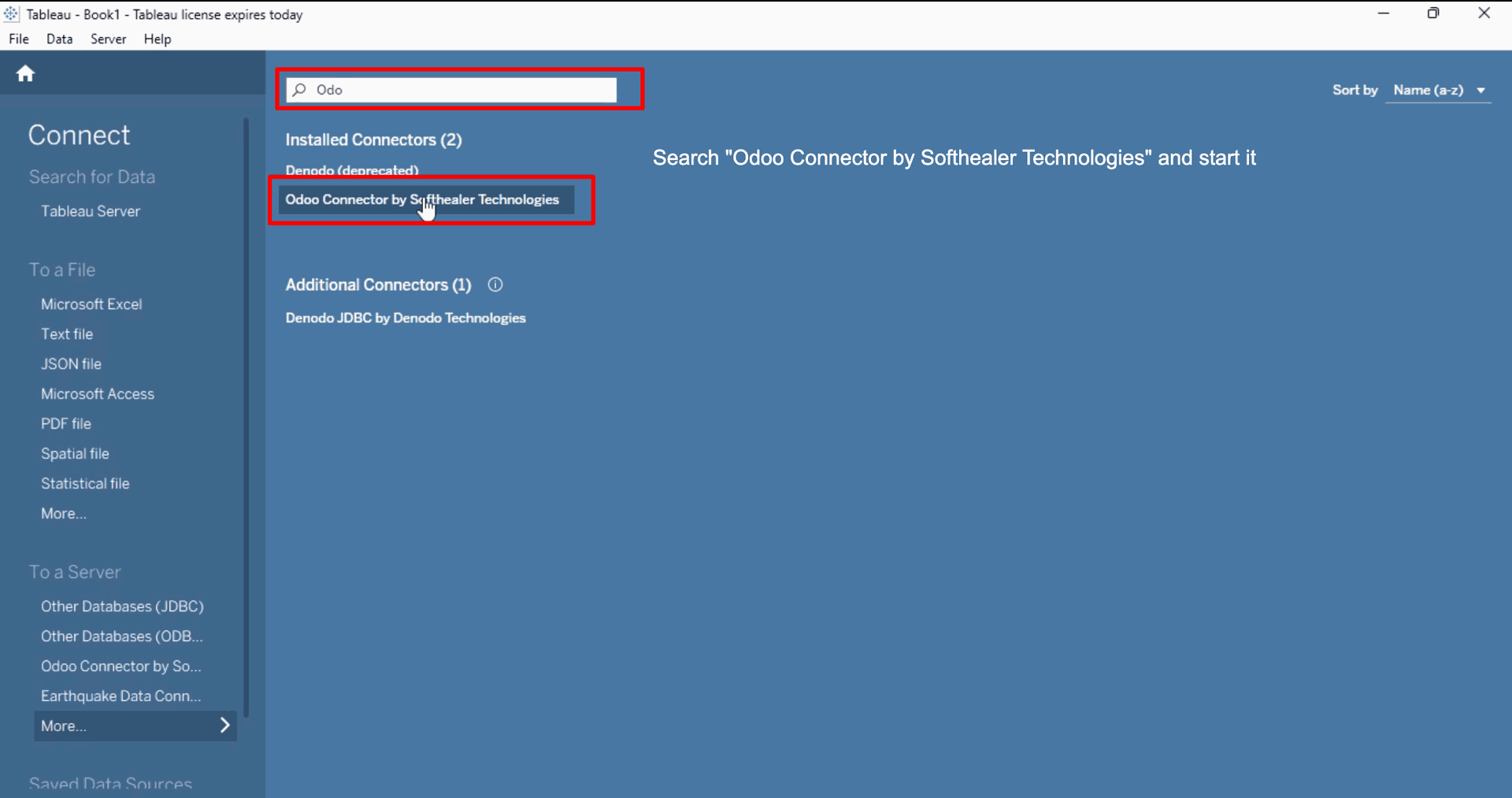 You can start the connector server by executing the setup file included inside the Tableau Odoo module.