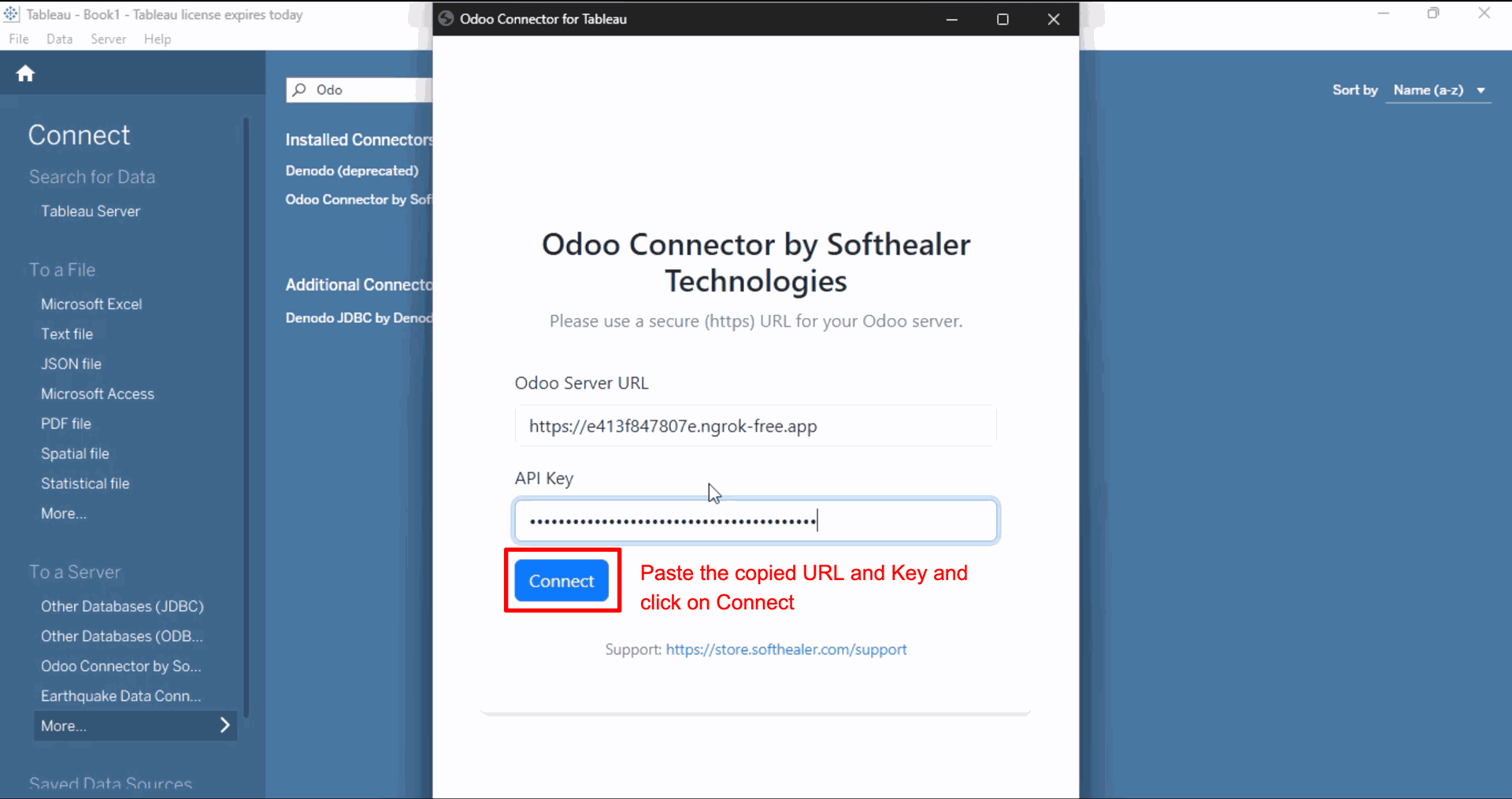 You can securely connect Tableau with your Odoo database using your generated API key.