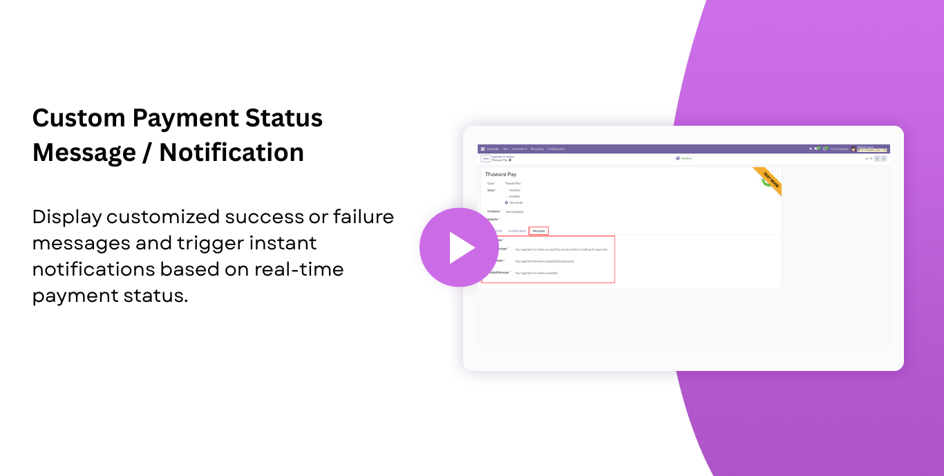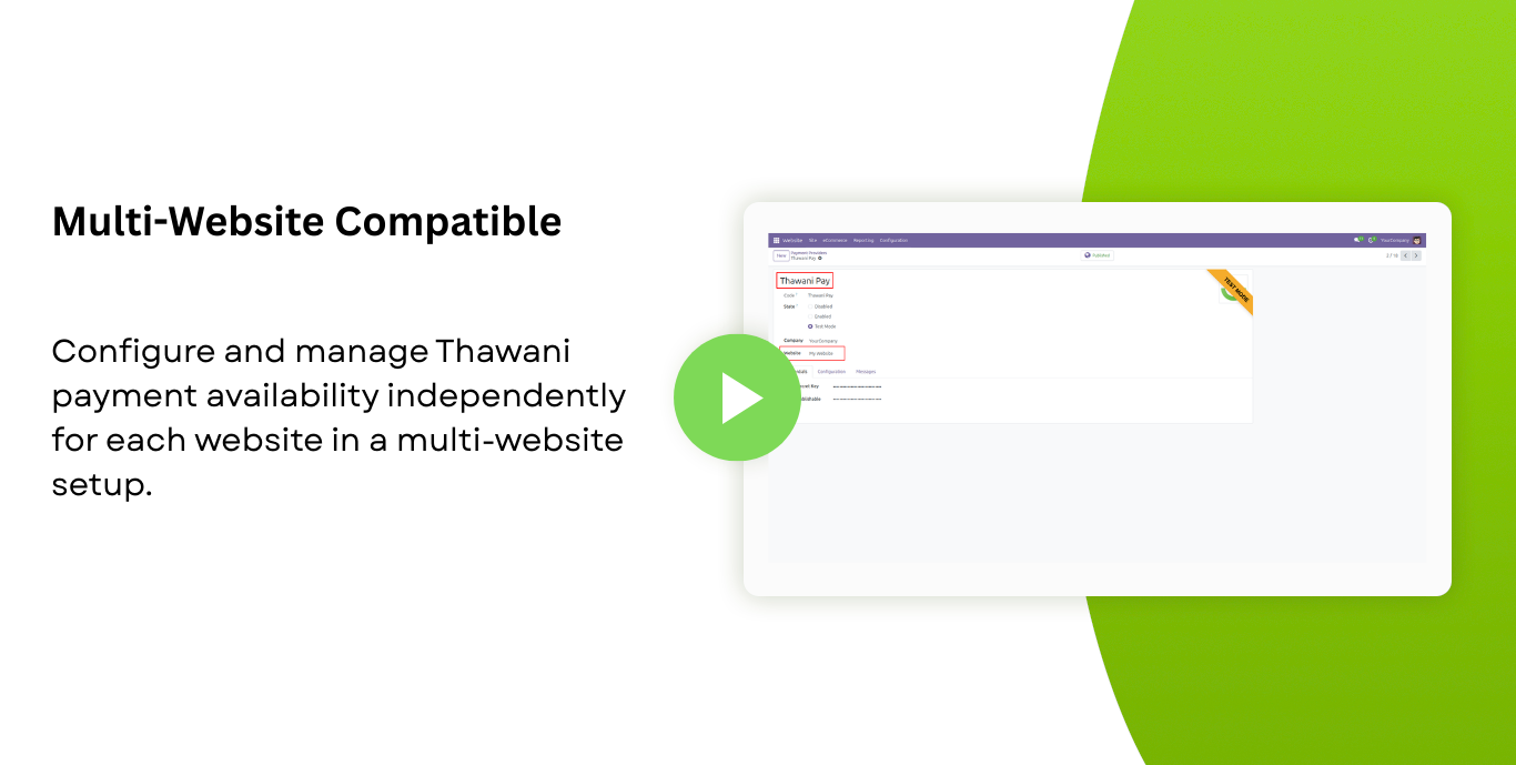 The Thawani Payment Provider module seamlessly integrates your Odoo store with the Thawani payment gateway, enabling fast and secure online payments through supported credit/debit cards and other Thawani payment methods. It enhances the checkout experience with customizable payment status messages and automatic notifications, while offering full multi-website compatibility so each site can manage its own payment settings. The module also supports processing refunds directly from Odoo for smoother cancellations, maintains complete transaction history for easy tracking, and handles multi-currency payments with accurate conversions. Additionally, customers can securely pay through a dedicated self-service payment portal, ensuring a reliable and convenient payment experience for your e-commerce business.