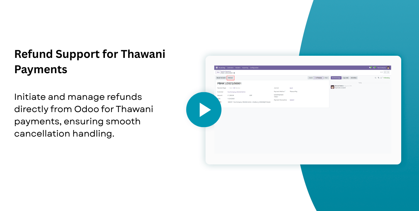 Process refunds directly from Odoo for any order paid through Thawani. Ensuring smooth handling of cancellations.