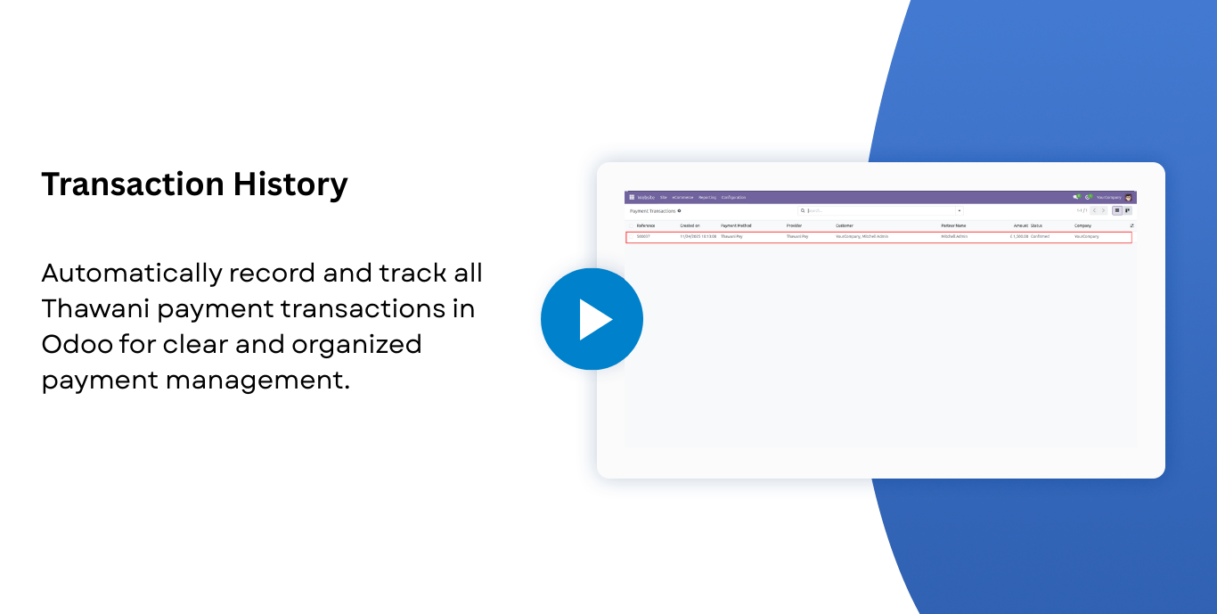 Maintain a transaction history in Odoo for all payments processed through Thawani, making payments straightforward.