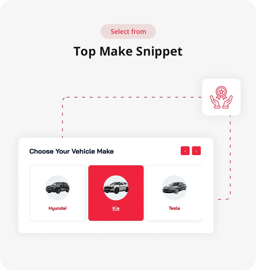 - A fully responsive snippet that guides customers and highlights your supported makes.