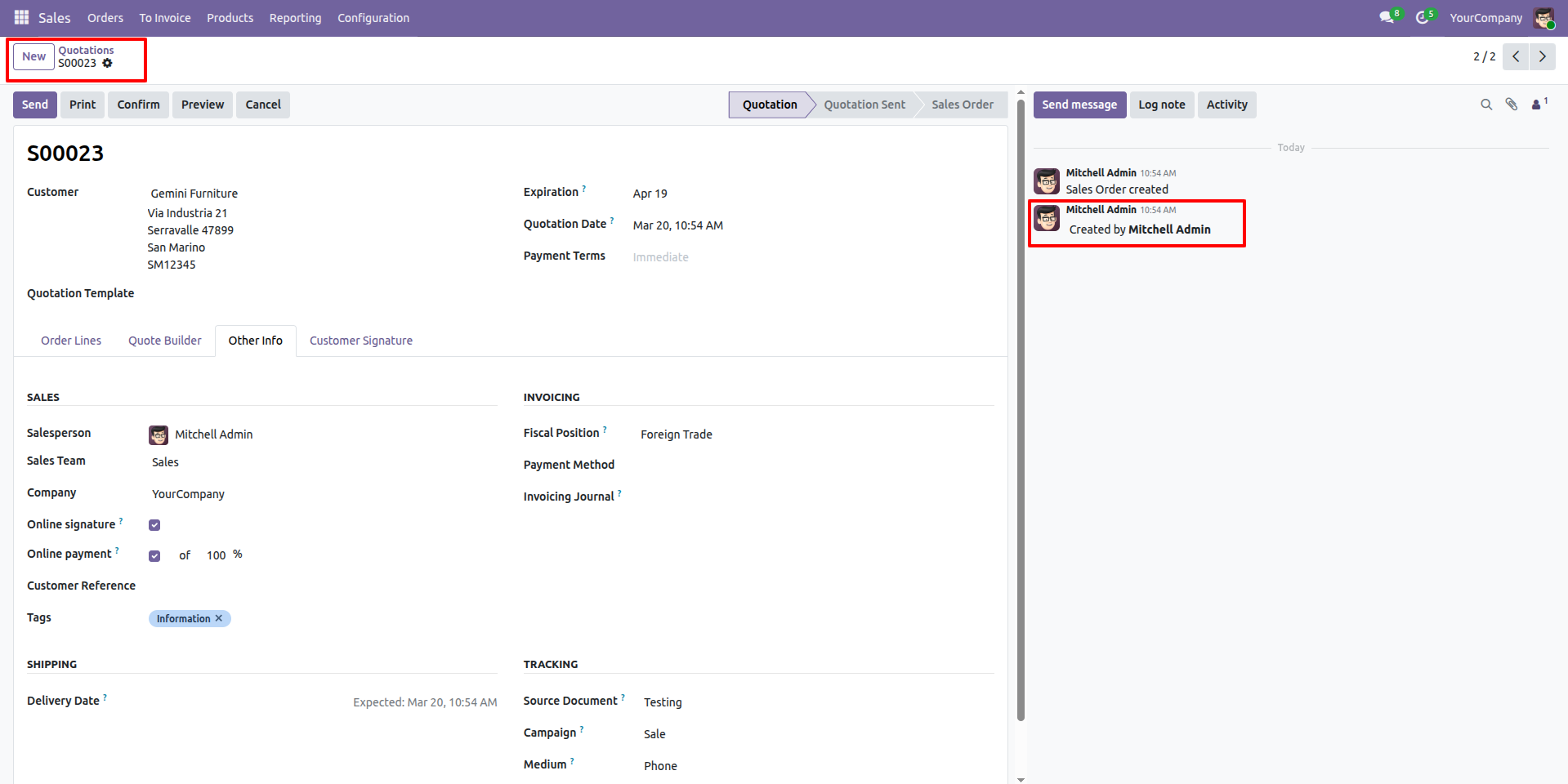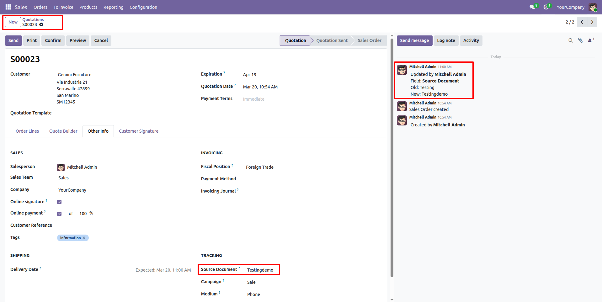 You can see all the updated logs in the chatter.