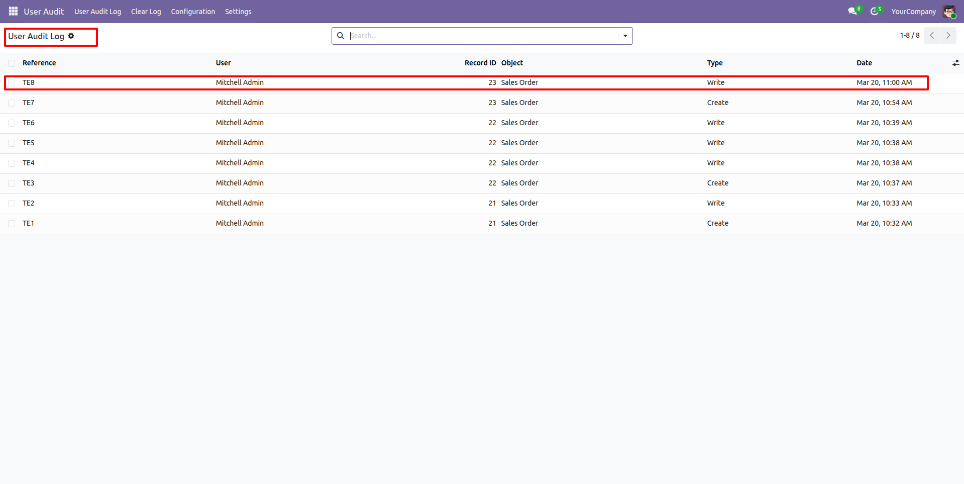This module allows to track all user's operations performed on data models such as create, read, write and delete. You can track every user's activity on all the objects of the system. You can group by audit logs with different dimensions like user, object & type. The log view contains details about each operation like date, record id, record object name, user name, type, old and new values of each modified field, etc.