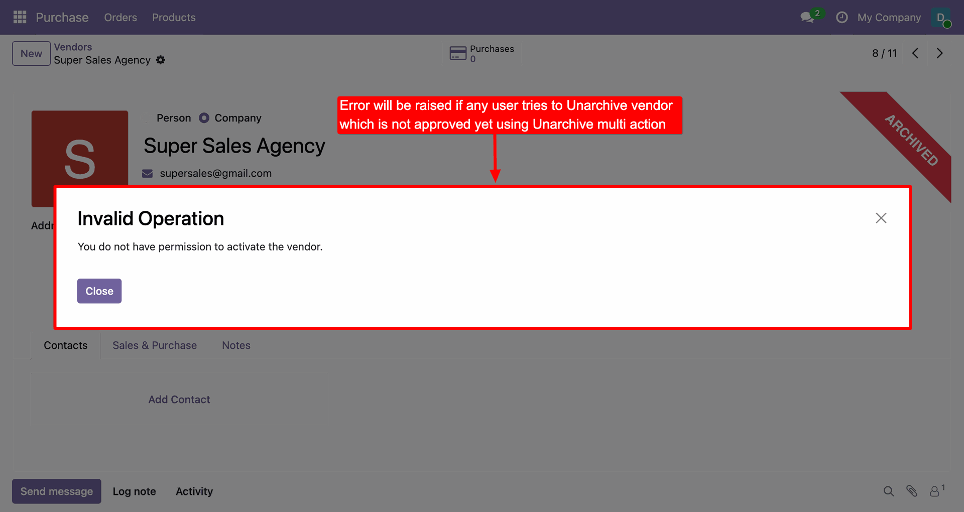 You cannot restore an archived vendor until it is approved. Trying to do so will show an error message.