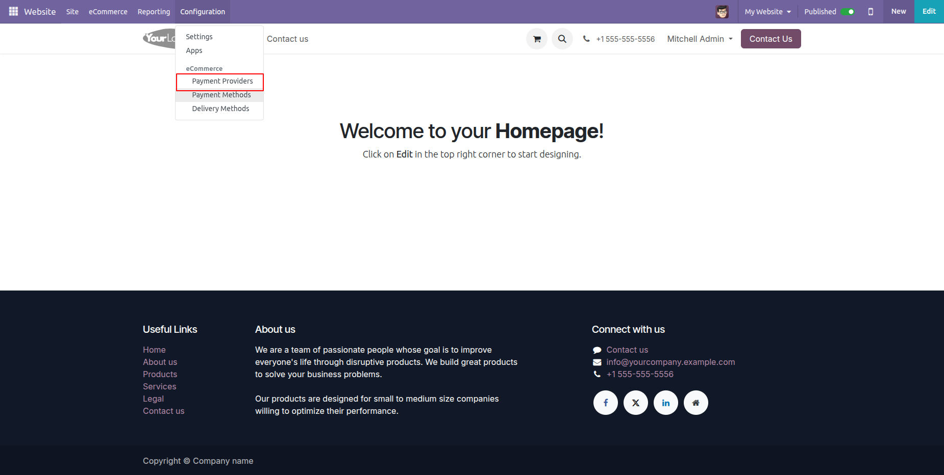 Go to your Website Configuration ==> Payment Providers