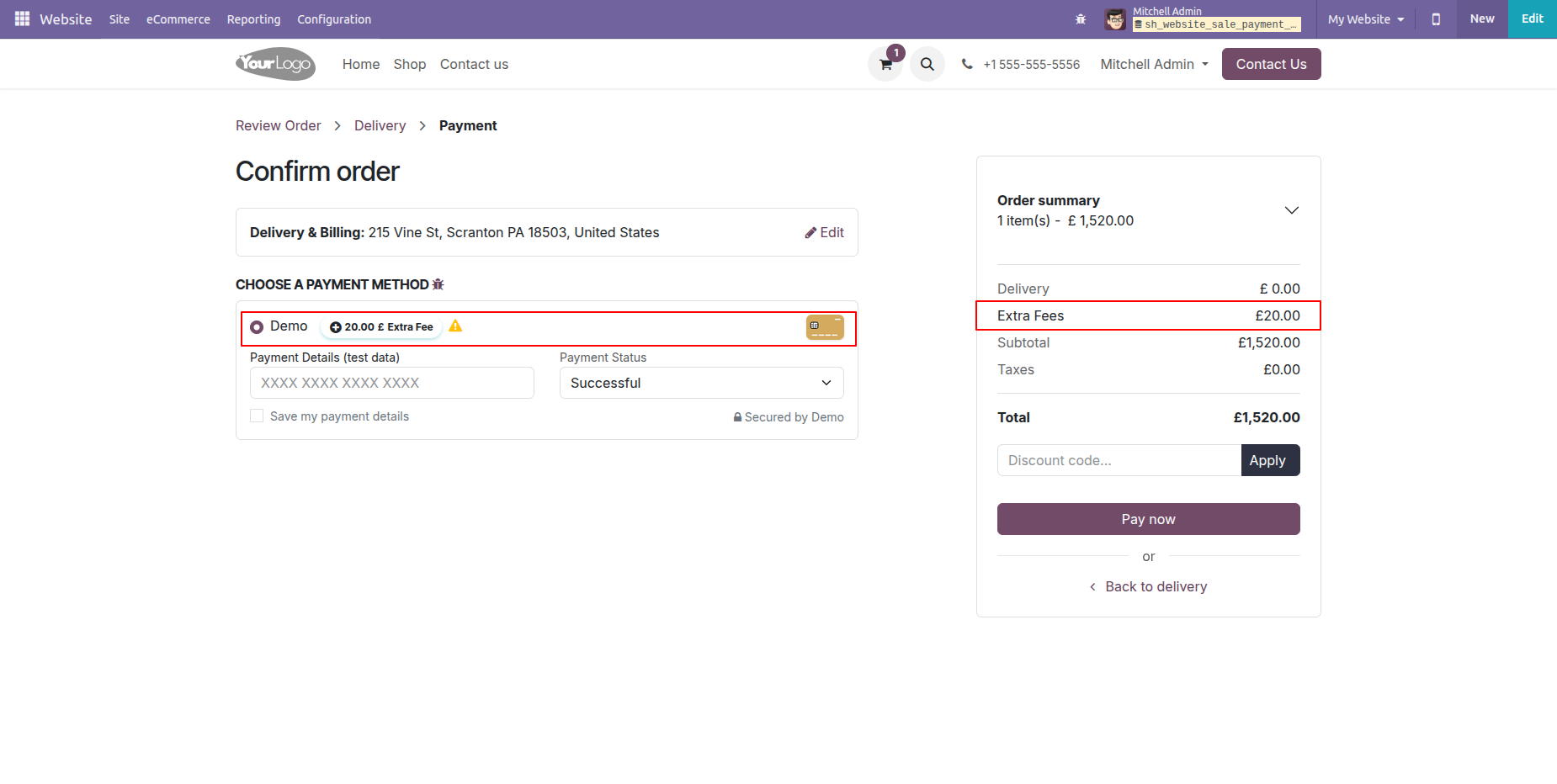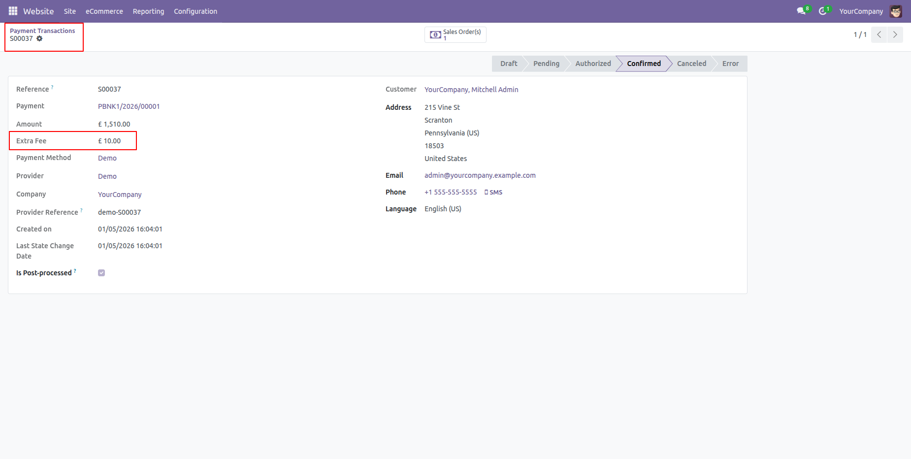 You can also view the extra fee amount in the sale order.