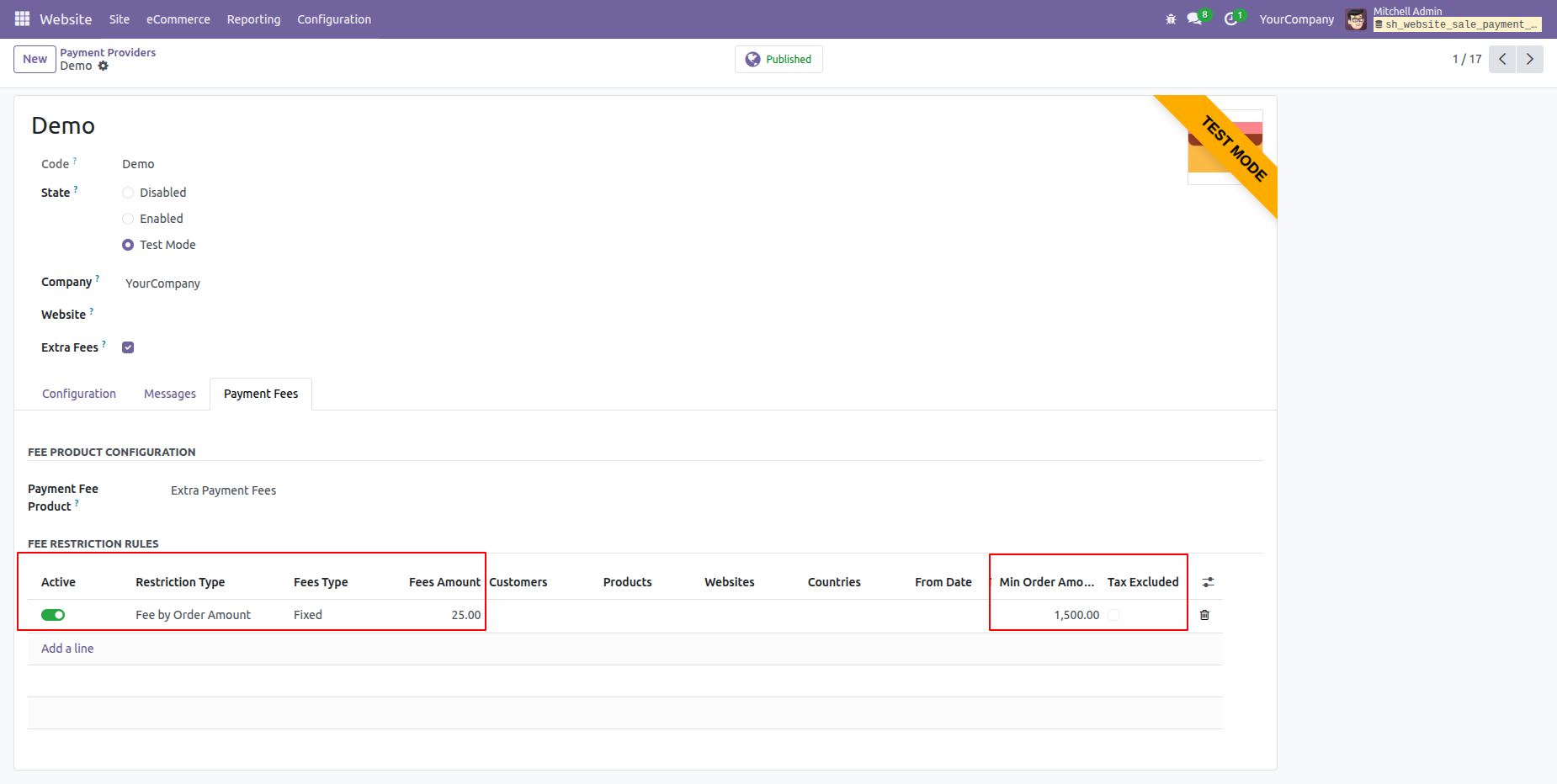 Here, you can see the Order Amoun based extra fees are automatically applied.