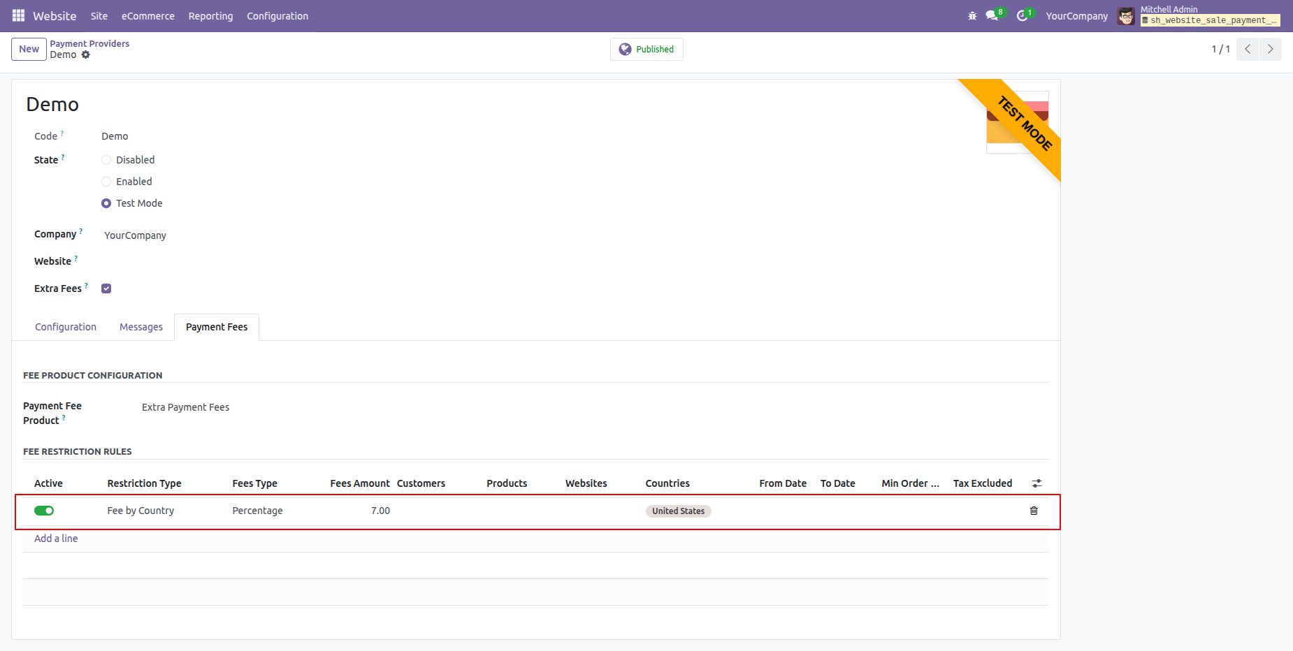 Activate the 'Fee By Website' option under the 'Payment Fees' tab.